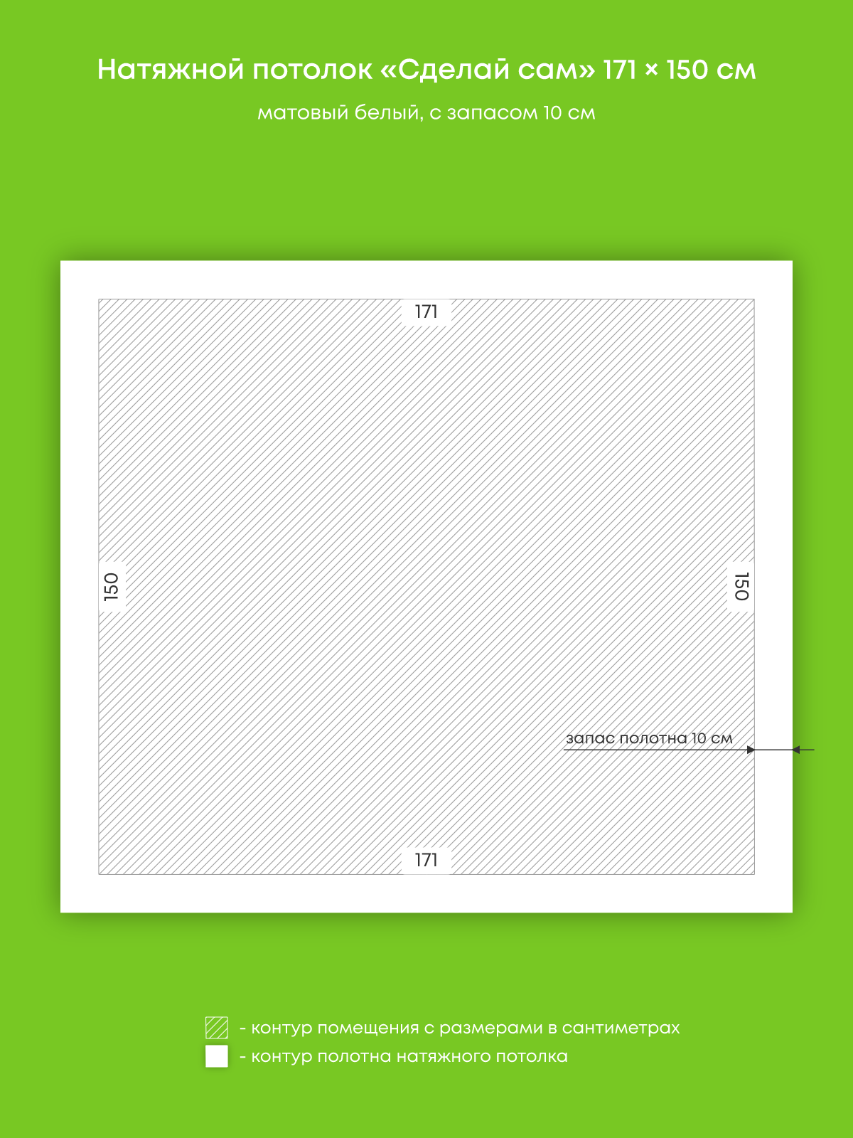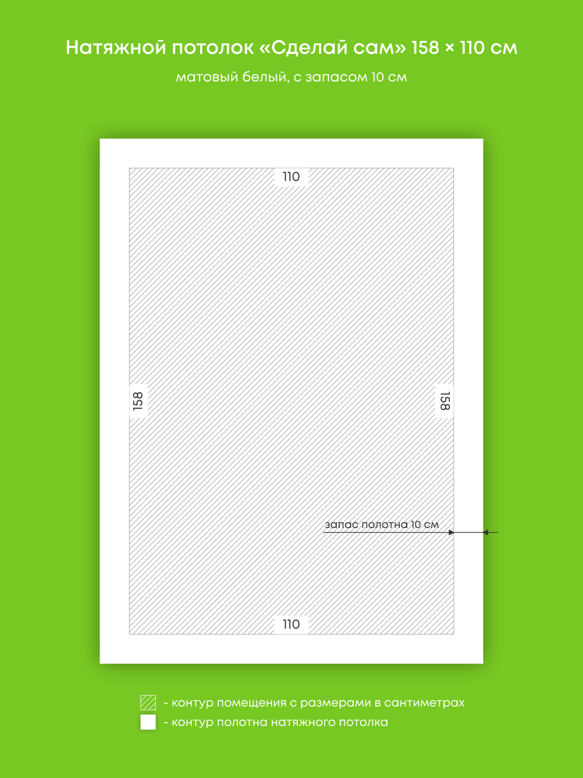 Натяжные потолки, изготовленные по индивидуальным размерам покупателя, для пяти помещений площадью 2.6 м2, 1.7 м2, 1.1 м2, 18.6 м2, 9 м2, 18.7 м2