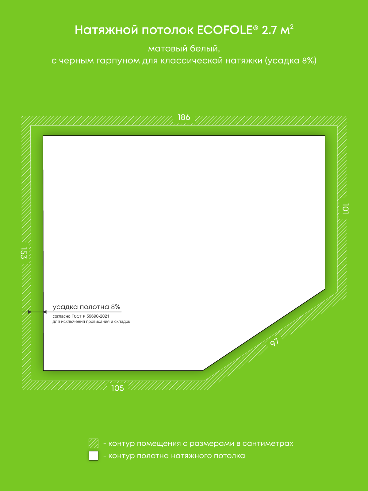 Натяжные потолки, изготовленные по индивидуальным размерам покупателя, для двух помещений площадью 2.7 м2, 2 м2