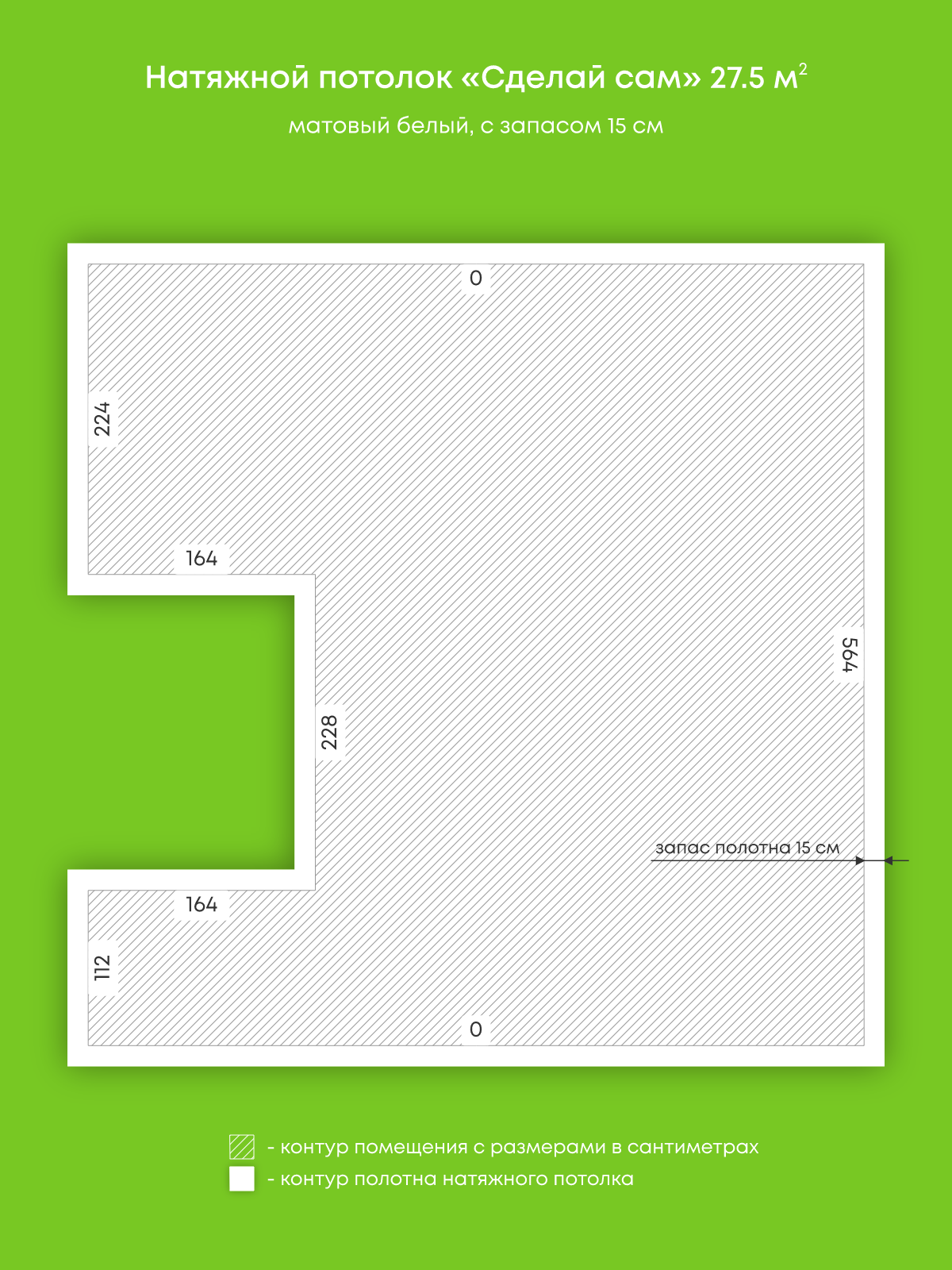 Натяжные потолки, изготовленные по индивидуальным размерам покупателя, для двух помещений площадью 27.5 м2, 3.7 м2