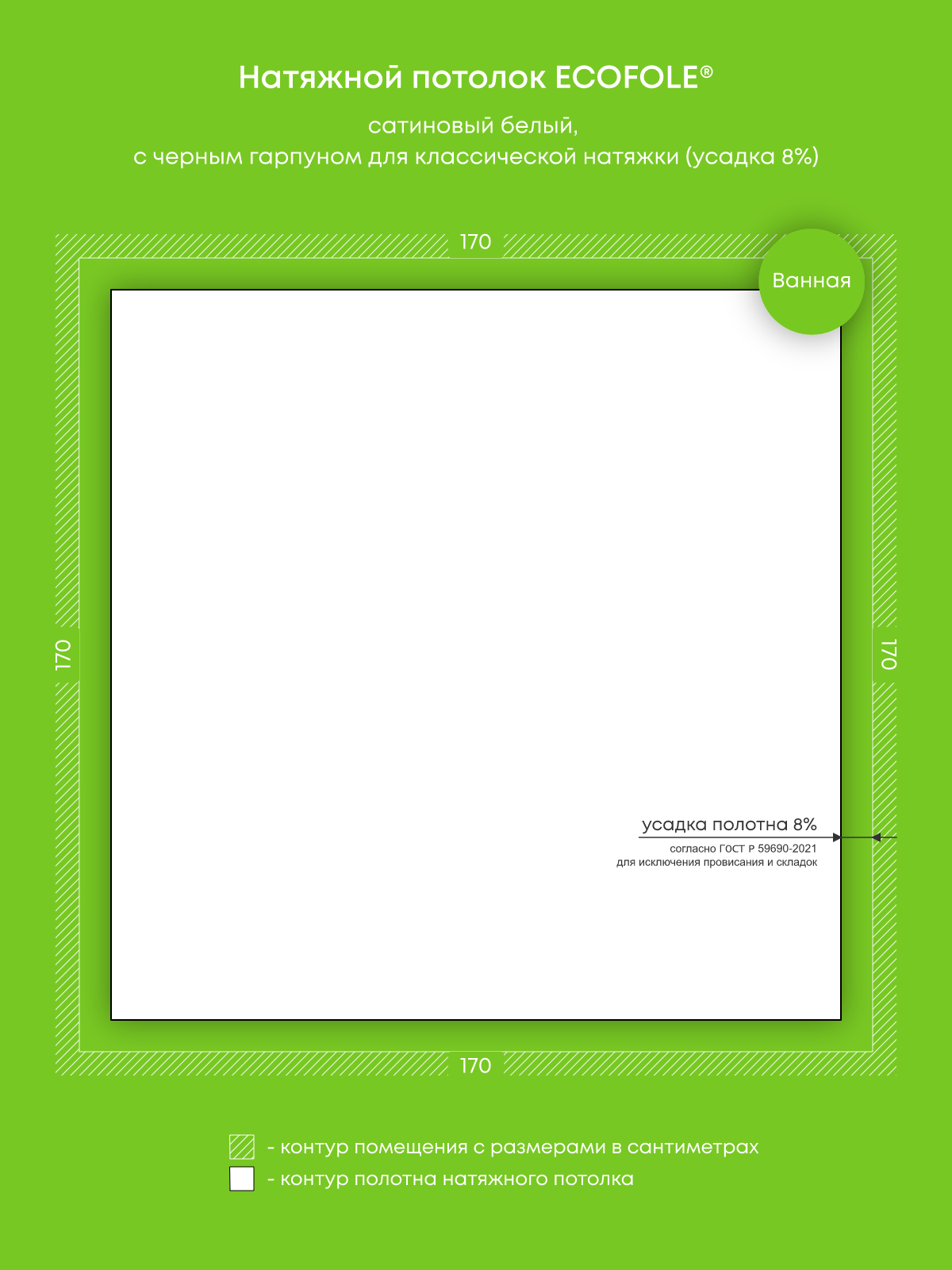 Натяжные потолки изготовленные по индивидуальным размерам покупателя, для двух помещений площадью: 2.9 м2, 0.9 м2