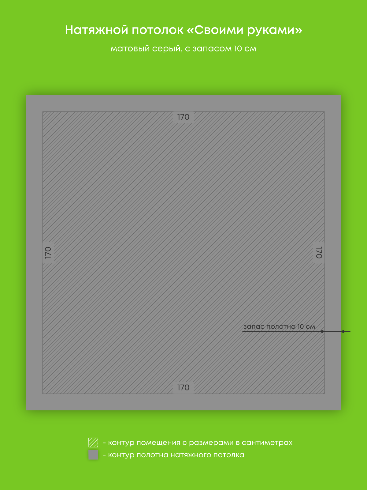 Натяжные потолки, изготовленные по индивидуальным размерам покупателя, для двух помещений площадью 2.9 м2, 1 м2
