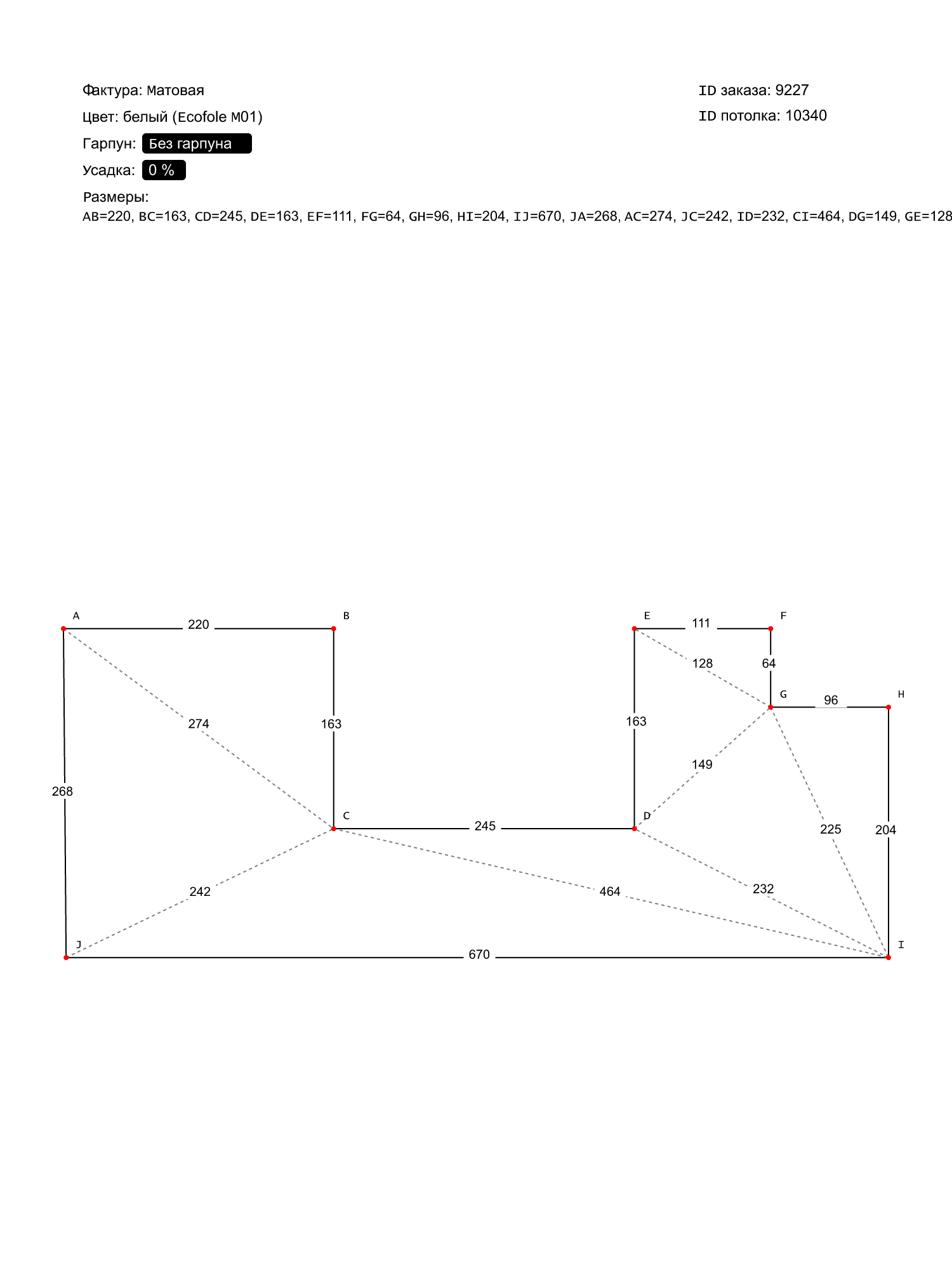 Натяжные потолки изготовленные по индивидуальным размерам покупателя, для двух помещений площадью: 2.9 м2, 11.2 м2