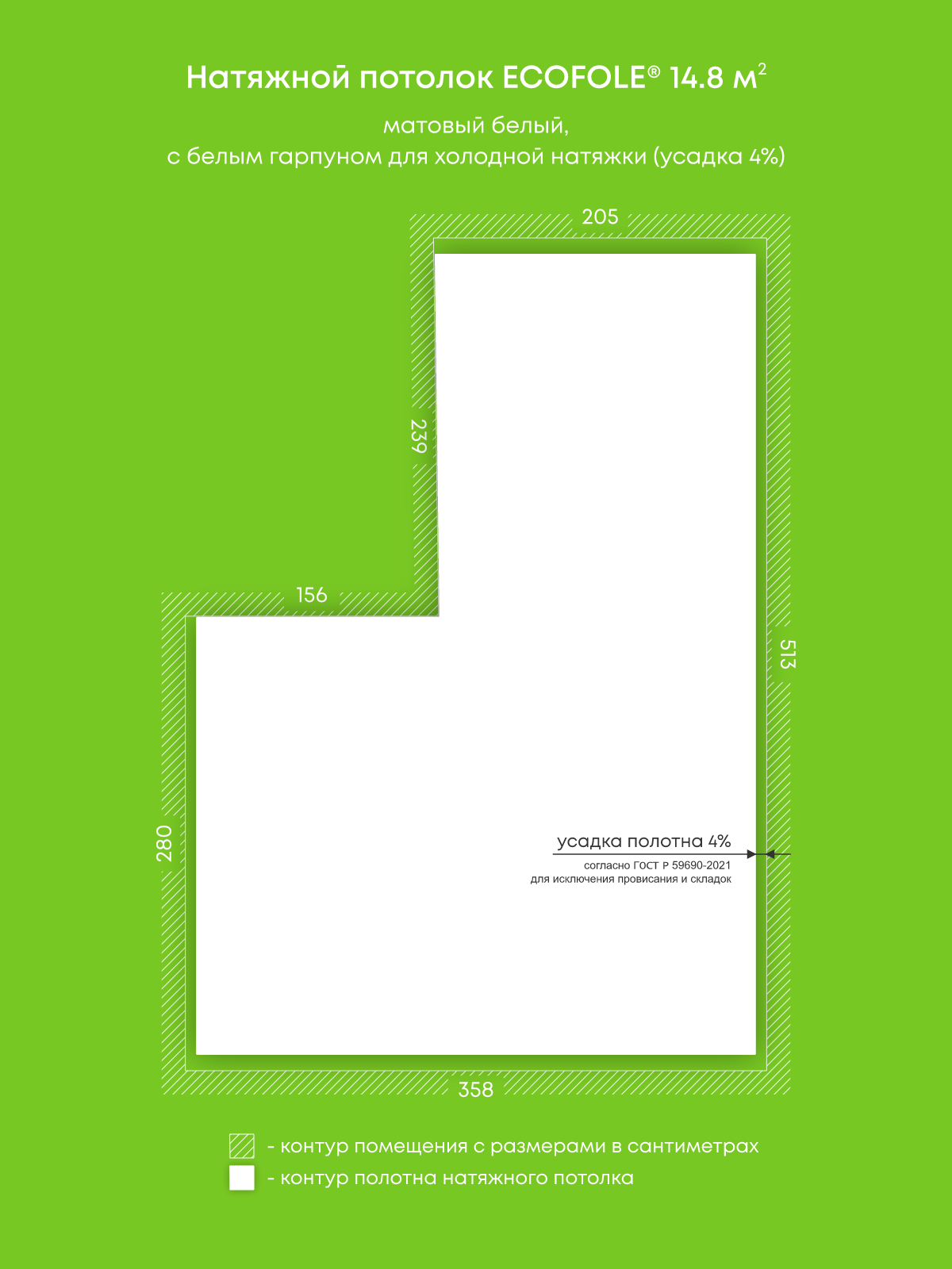 Натяжные потолки, изготовленные по индивидуальным размерам покупателя, для трех помещений площадью 3.2 м2, 14.8 м2, 18.3 м2
