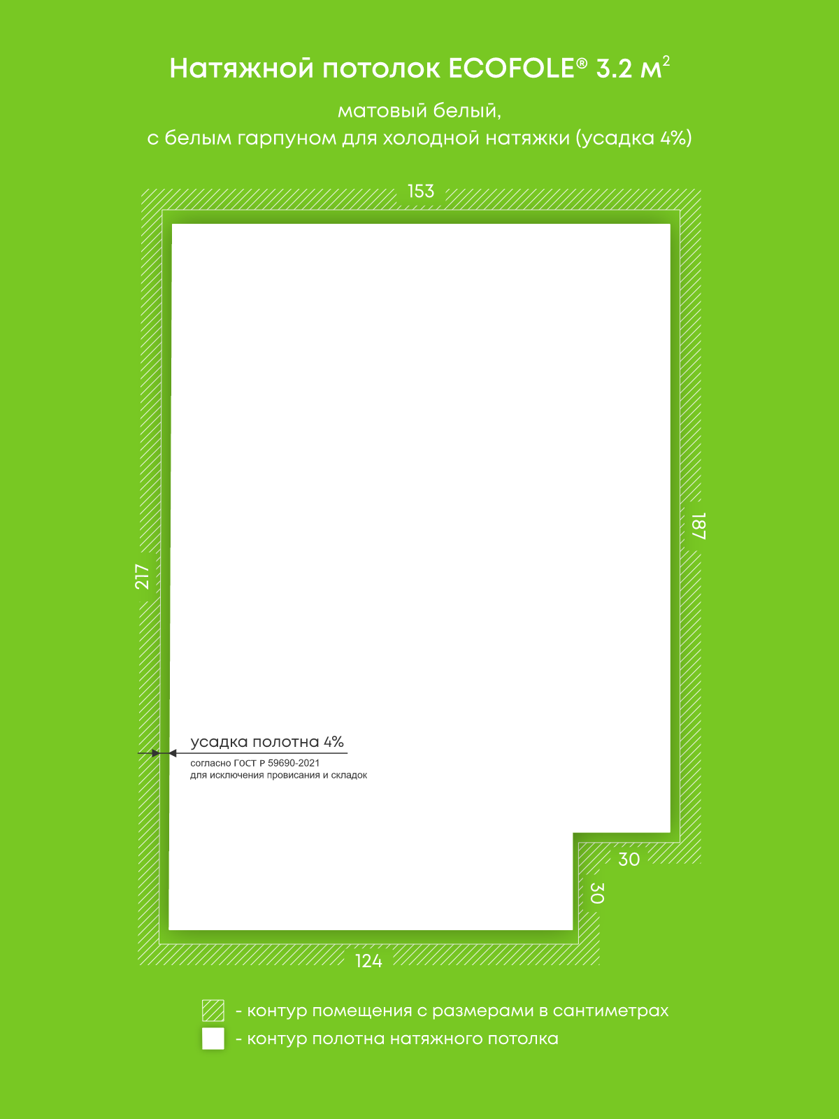 Натяжные потолки, изготовленные по индивидуальным размерам покупателя, для двух помещений площадью 3.2 м2, 1.6 м2