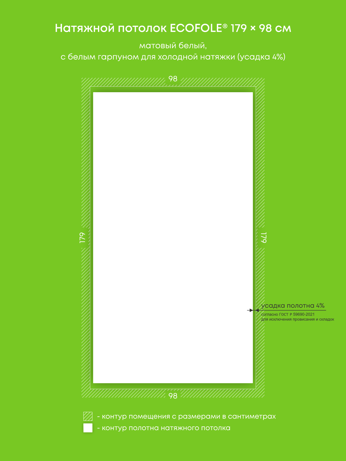 Натяжные потолки, изготовленные по индивидуальным размерам покупателя, для двух помещений площадью 3.4 м2, 1.8 м2