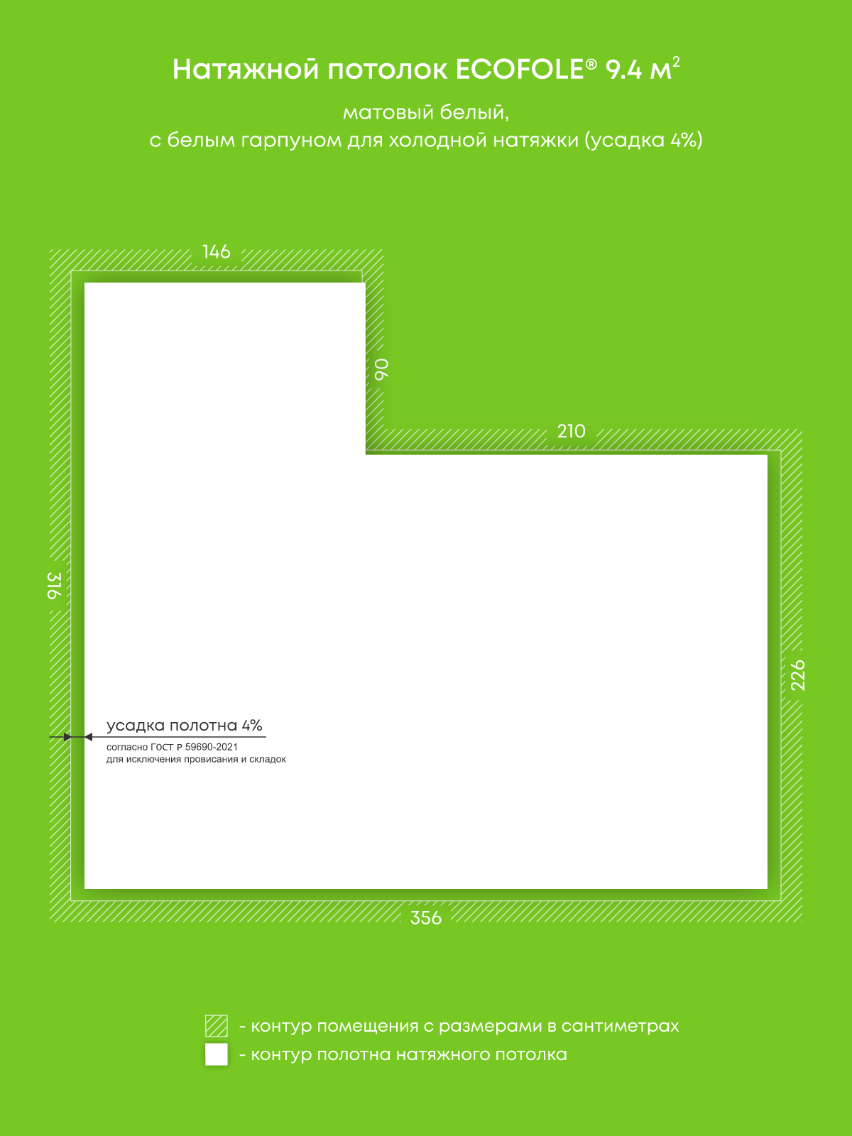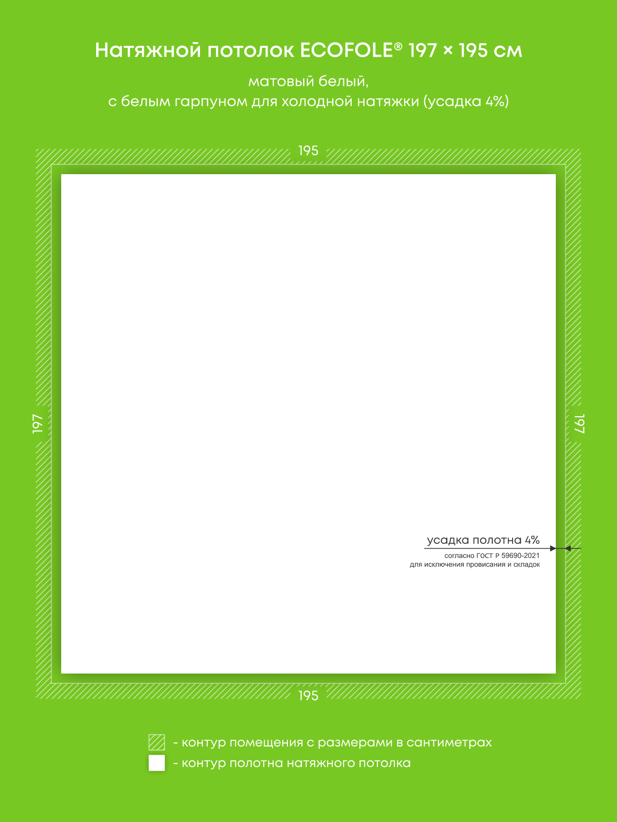 Натяжные потолки, изготовленные по индивидуальным размерам покупателя, для трех помещений площадью 3.8 м2, 11.4 м2, 9.4 м2