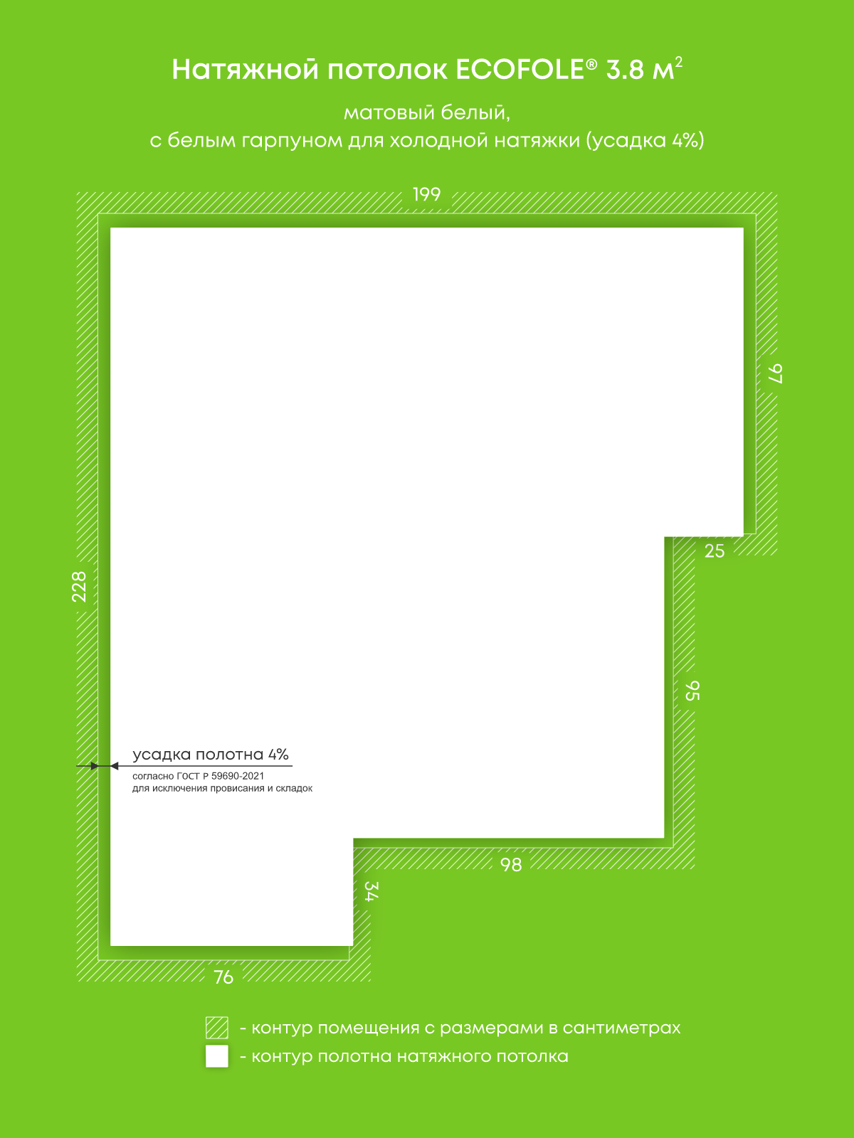Натяжные потолки, изготовленные по индивидуальным размерам покупателя, для двух помещений площадью 3.8 м2, 3.8 м2