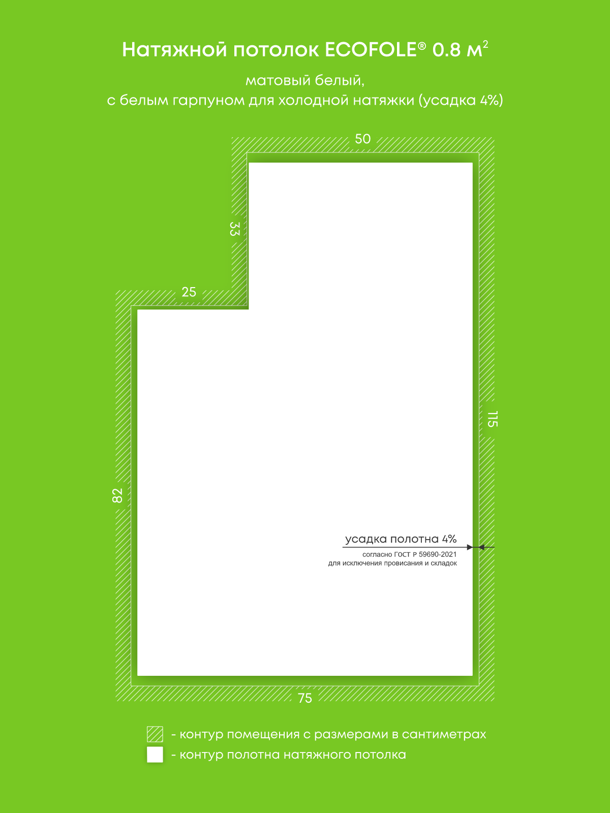 Натяжные потолки, изготовленные по индивидуальным размерам покупателя, для двух помещений площадью 3.9 м2, 0.8 м2