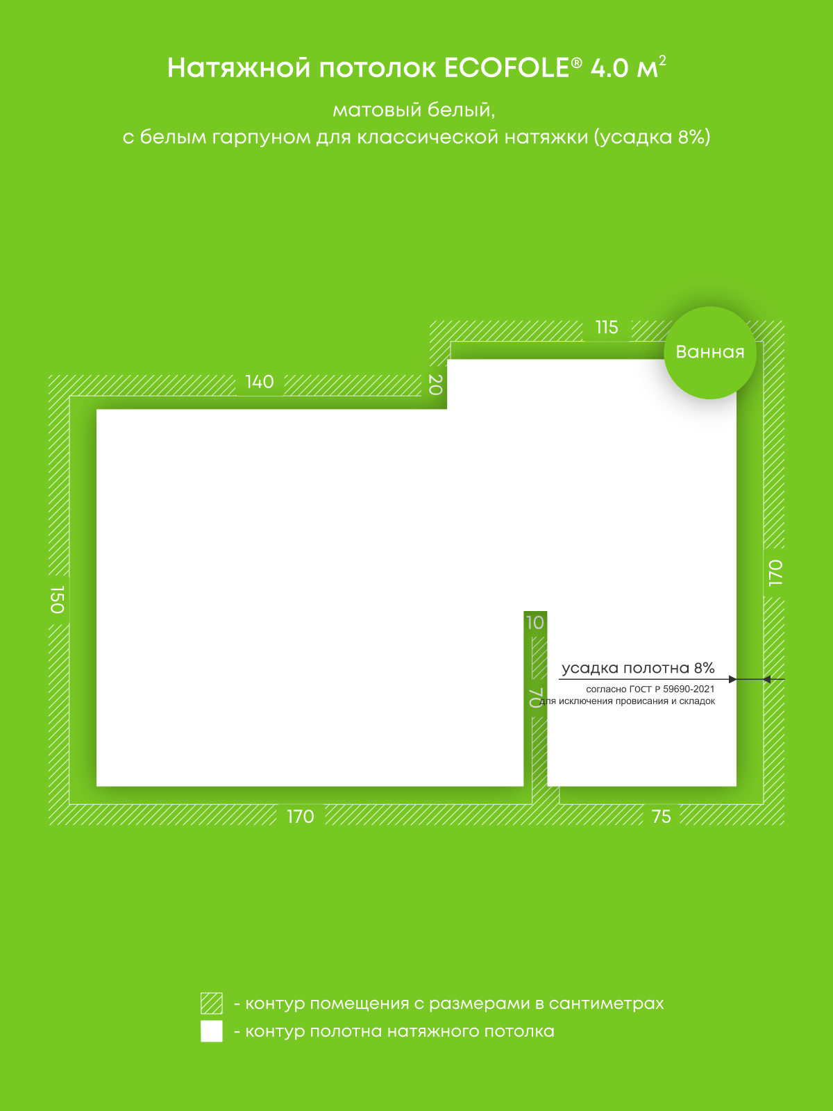Натяжные потолки изготовленные по индивидуальным размерам покупателя, для двух помещений площадью: 4 м2, 1.1 м2