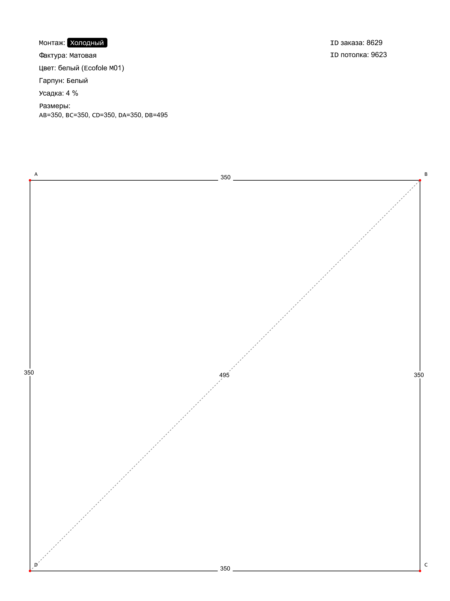 Натяжные потолки изготовленные по индивидуальным размерам покупателя, для двух помещений площадью: 41.1 м2, 12.3 м2