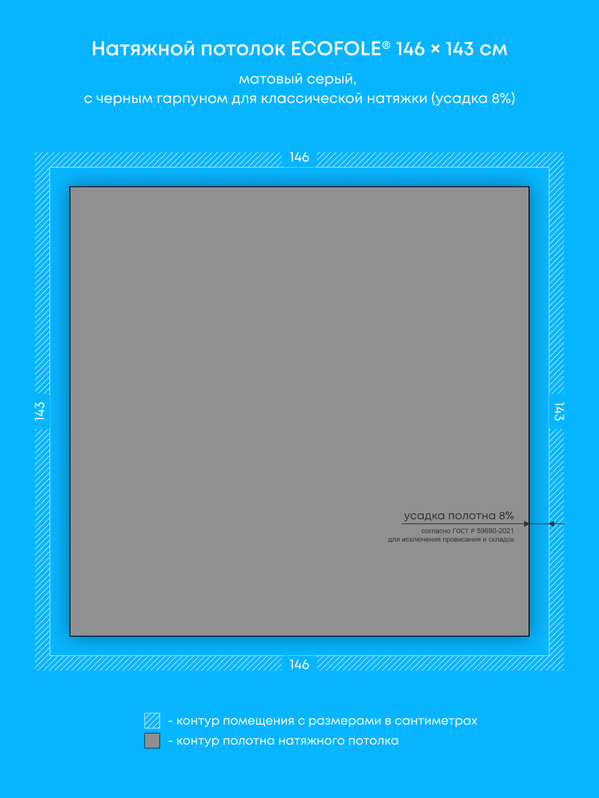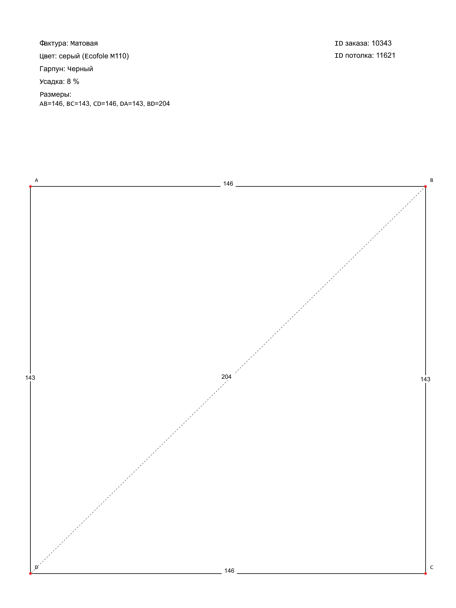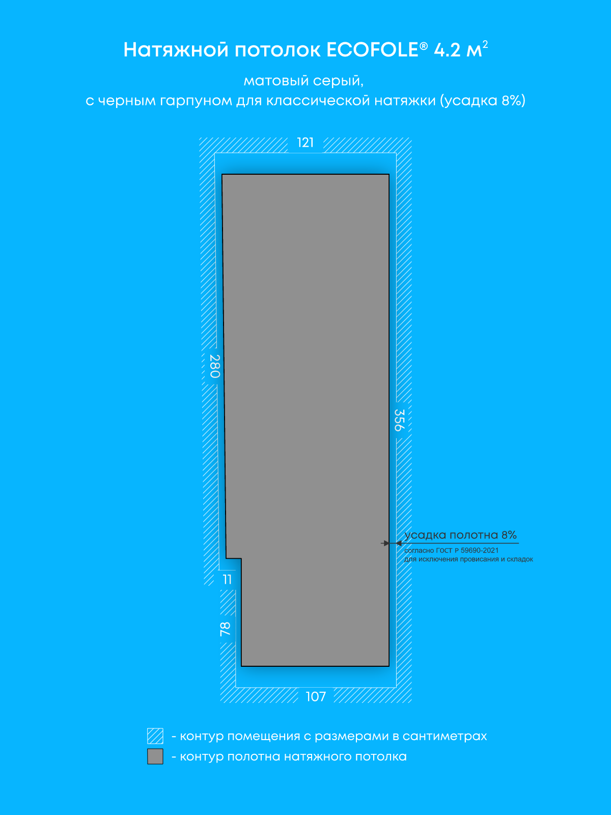 Натяжные потолки изготовленные по индивидуальным размерам покупателя, для трех помещений площадью: 4.2 м2, 2.1 м2, 2.1 м2