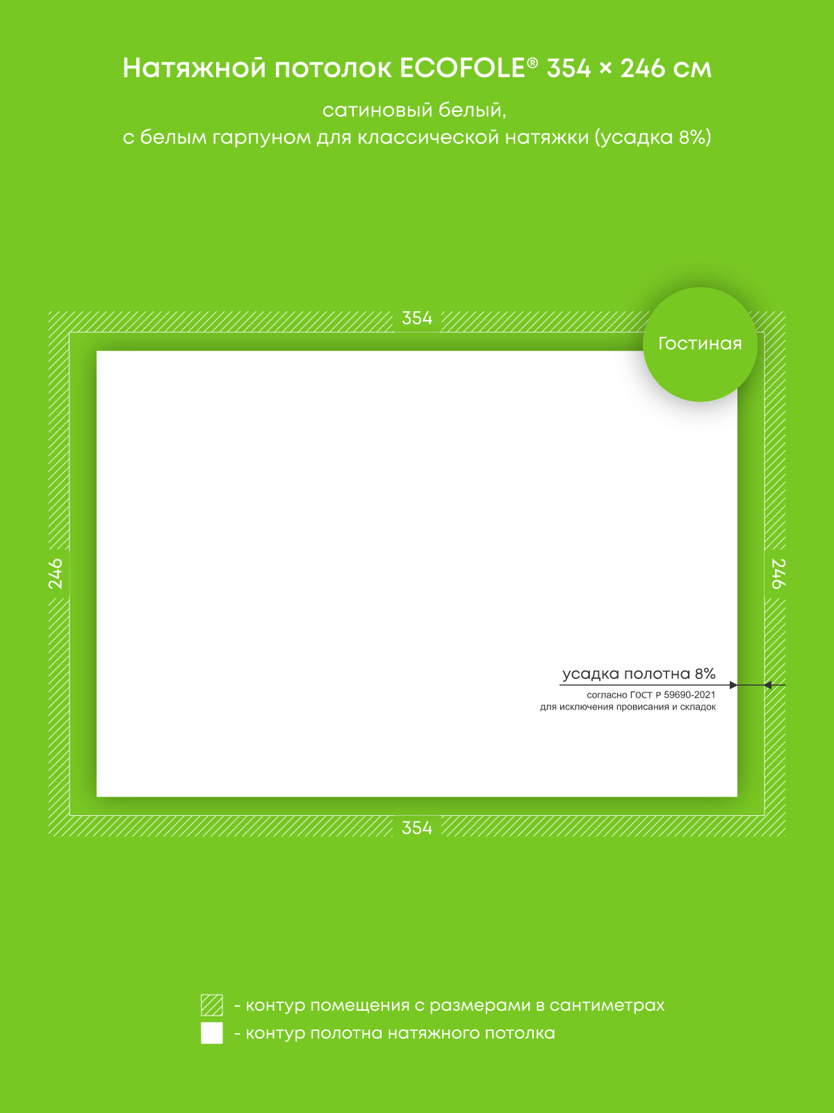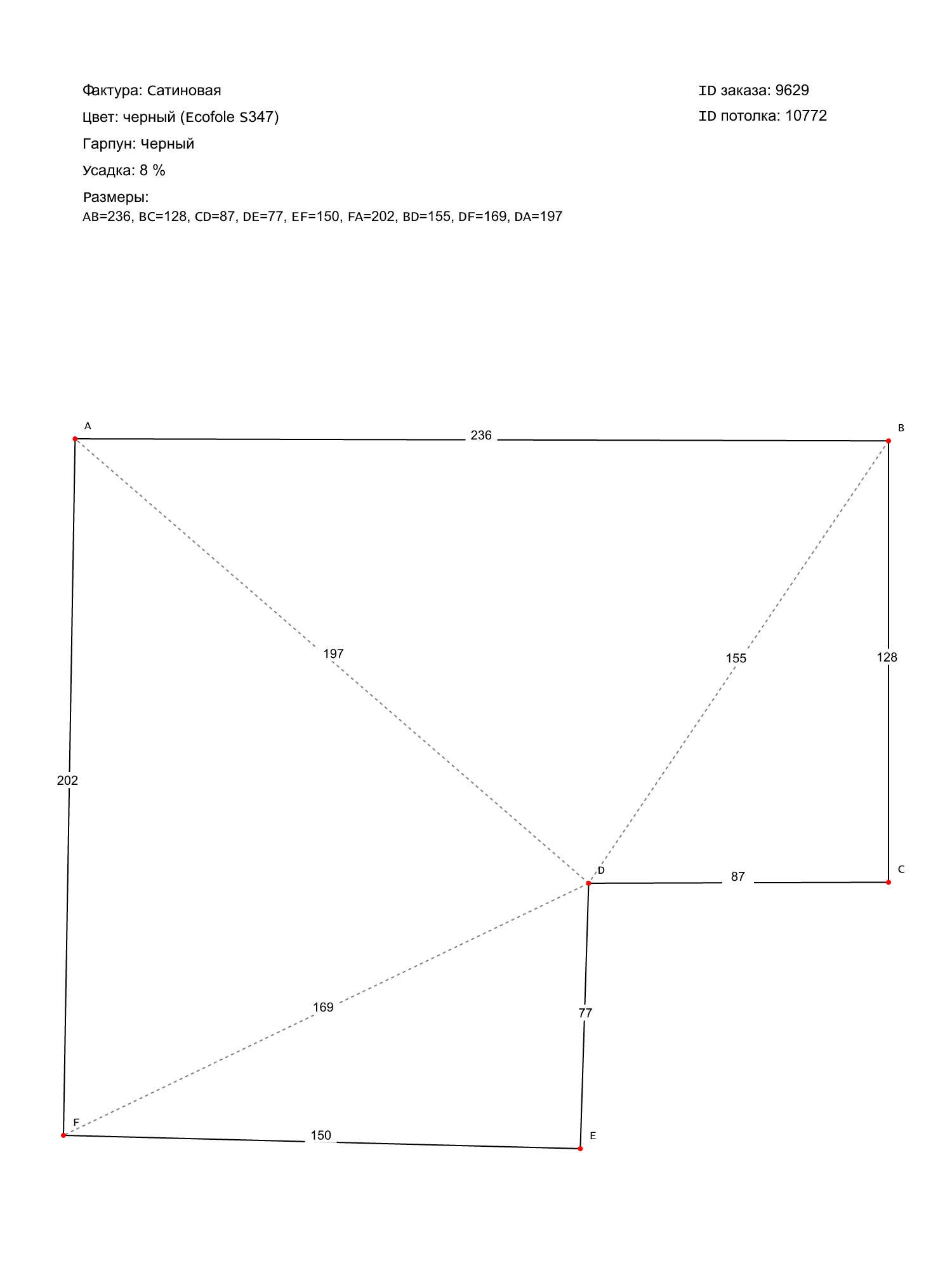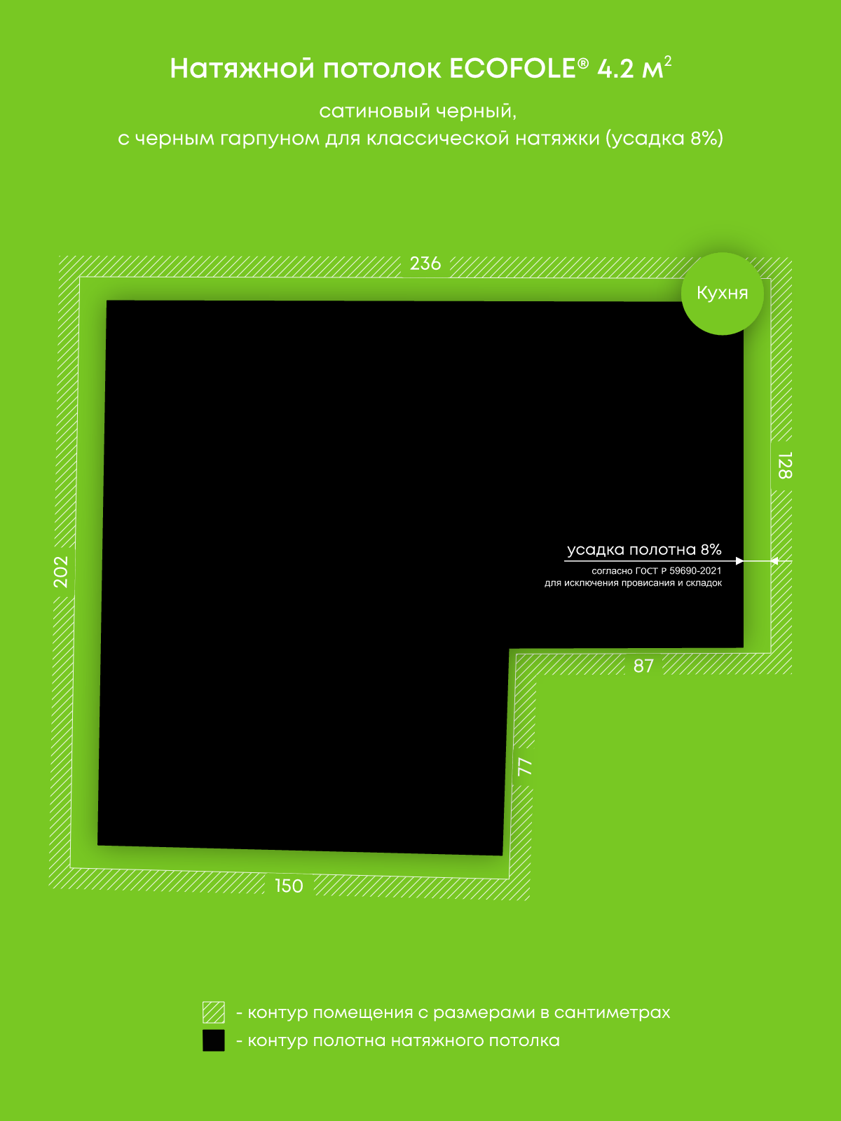 Натяжные потолки изготовленные по индивидуальным размерам покупателя, для двух помещений площадью: 4.2 м2, 8.7 м2