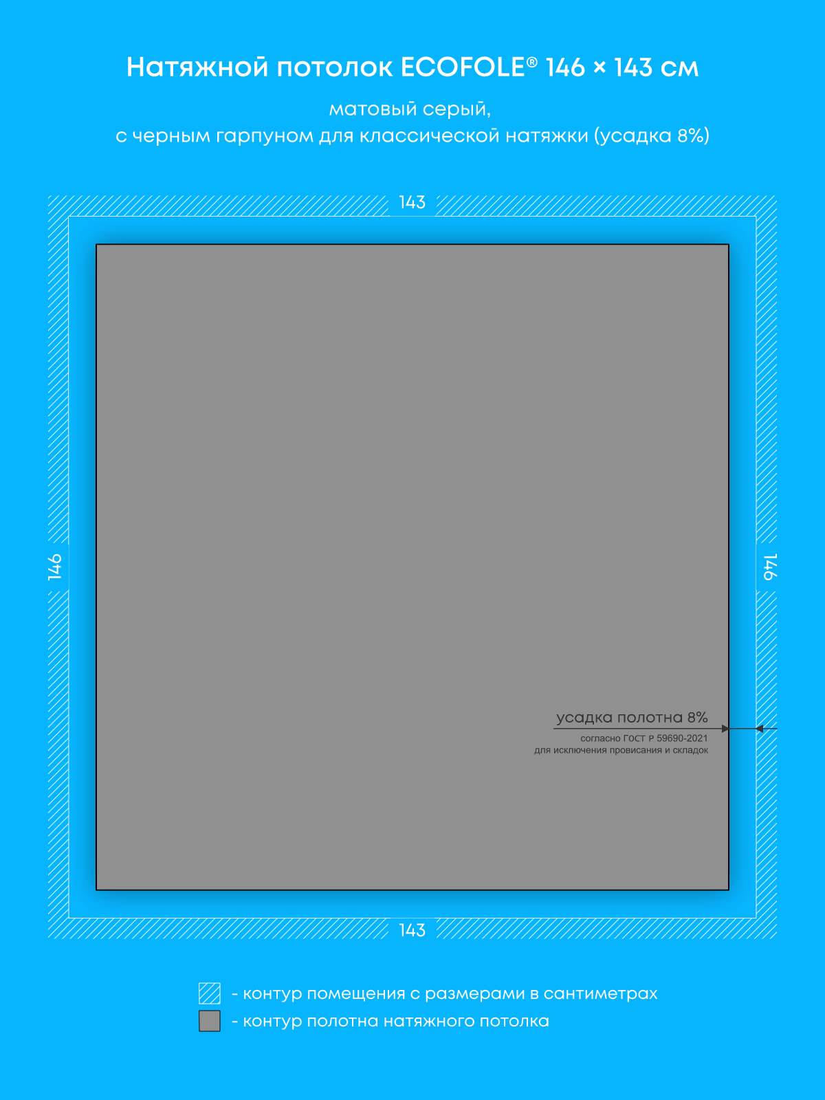 Натяжные потолки изготовленные по индивидуальным размерам покупателя, для трех помещений площадью: 4.3 м2, 2.1 м2, 2.1 м2