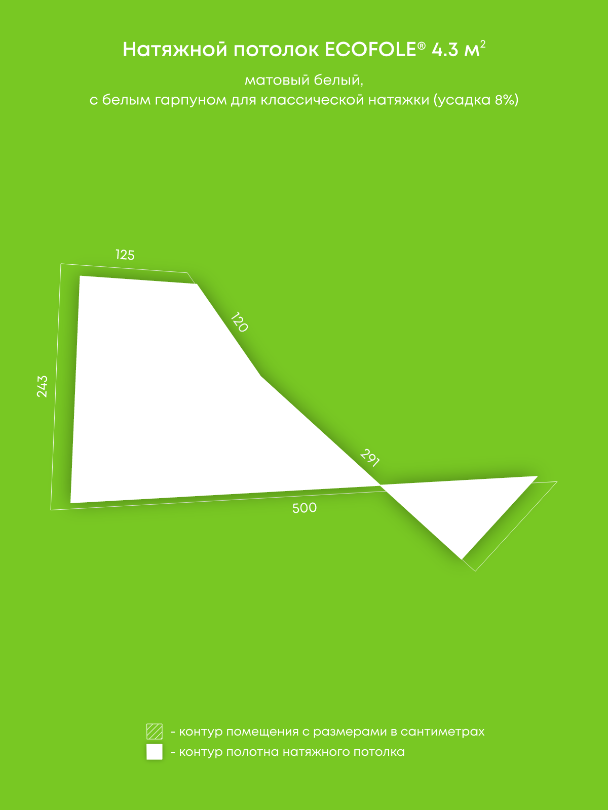 Натяжные потолки, изготовленные по индивидуальным размерам покупателя, для двух помещений площадью 4.3 м2, 4 м2
