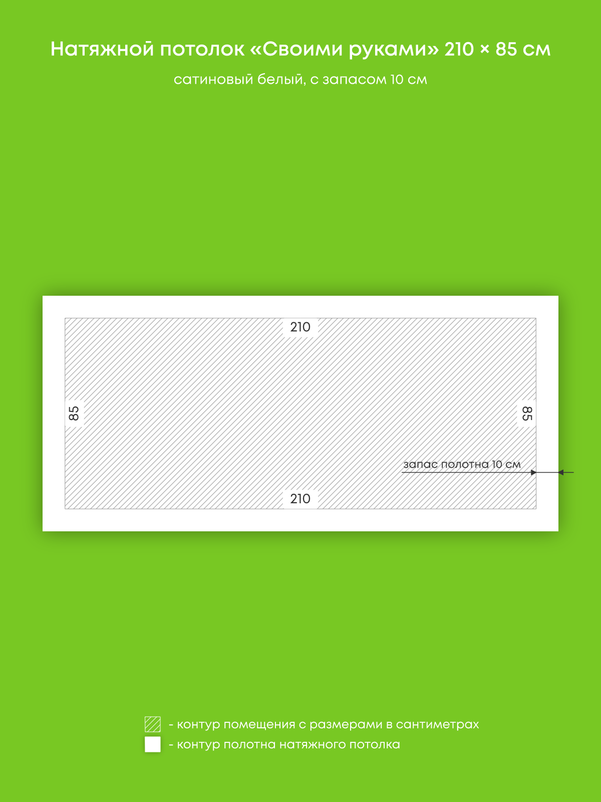 Натяжные потолки, изготовленные по индивидуальным размерам покупателя, для трех помещений площадью 4.8 м2, 1.8 м2, 0.7 м2