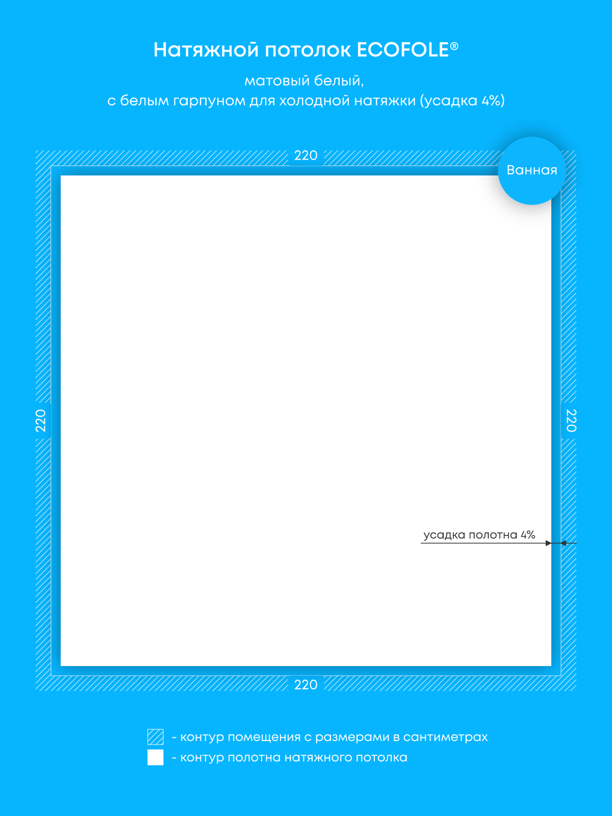 Натяжные потолки изготовленные по индивидуальным размерам покупателя, для пяти помещений площадью: 4.8 м2, 6.2 м2, 10 м2, 10.1 м2, 9.7 м2