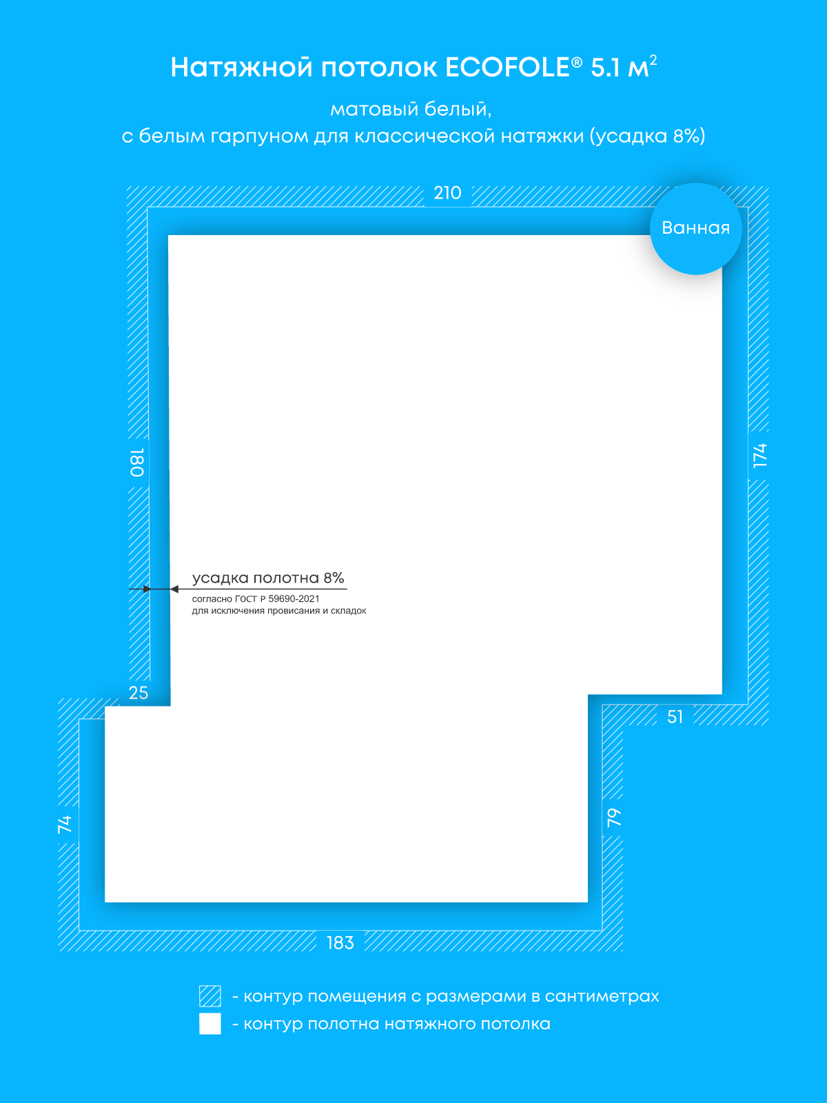 Натяжные потолки: 5.1 м2, 4 м2