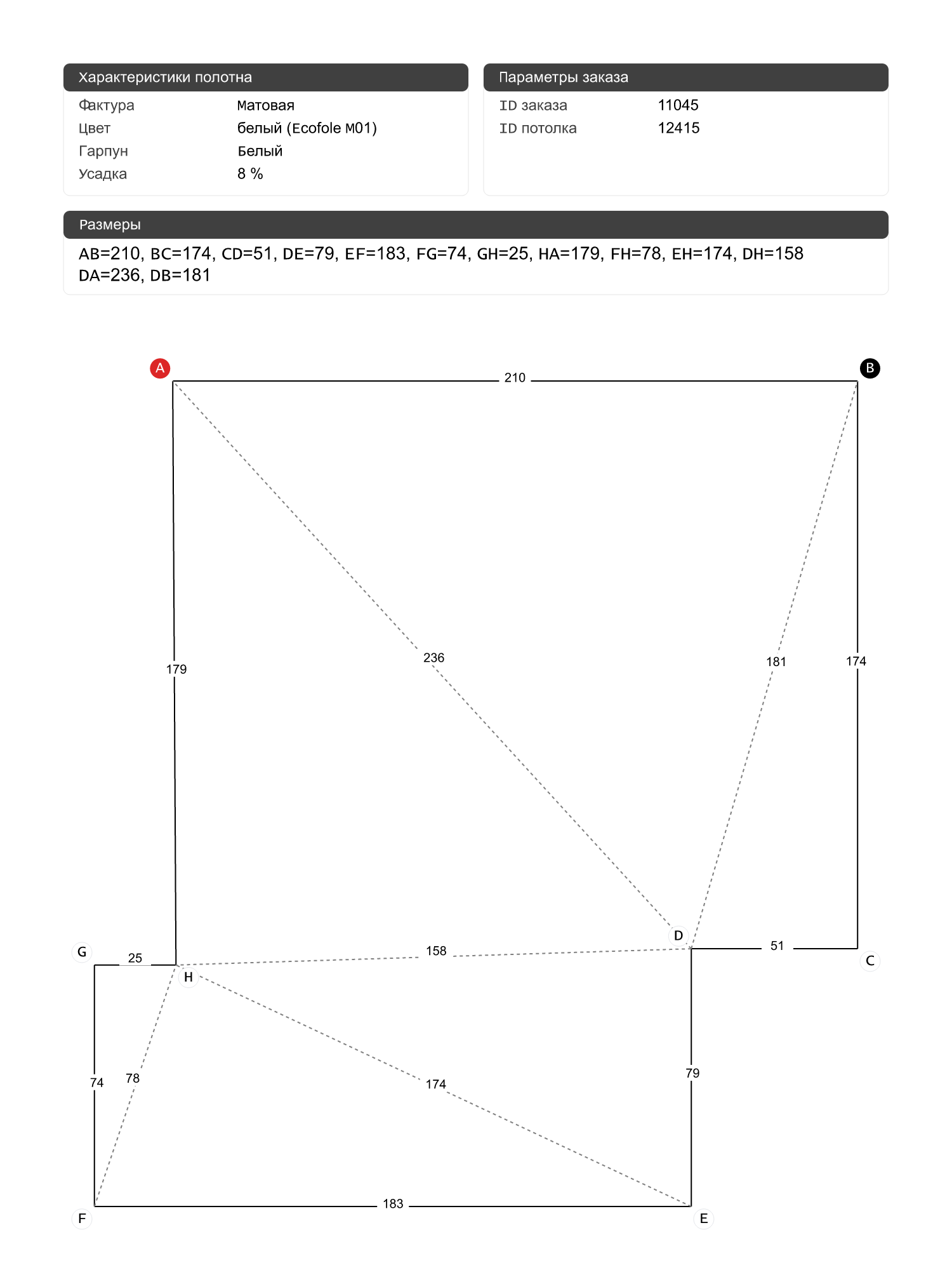 Натяжные потолки изготовленные по индивидуальным размерам покупателя, для двух помещений площадью: 5.1 м2, 4 м2