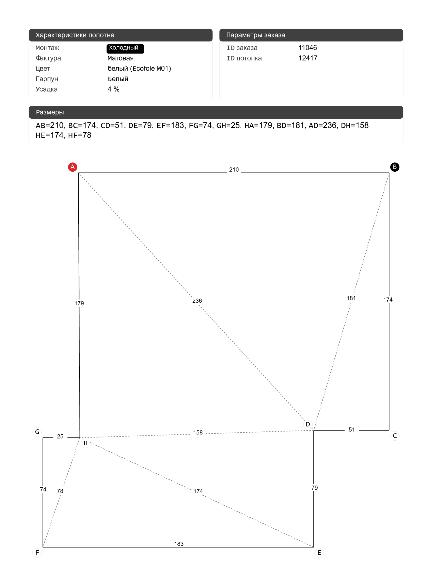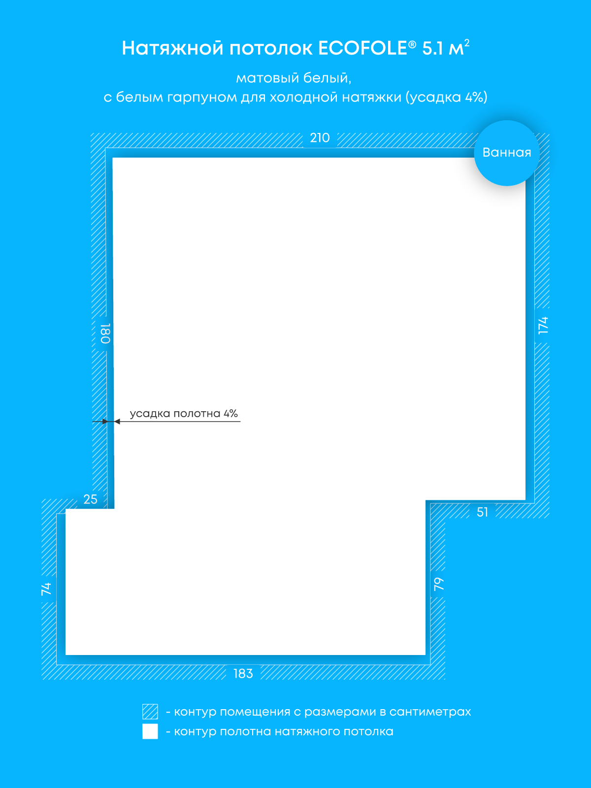 Натяжные потолки изготовленные по индивидуальным размерам покупателя, для двух помещений площадью: 5.1 м2, 4 м2