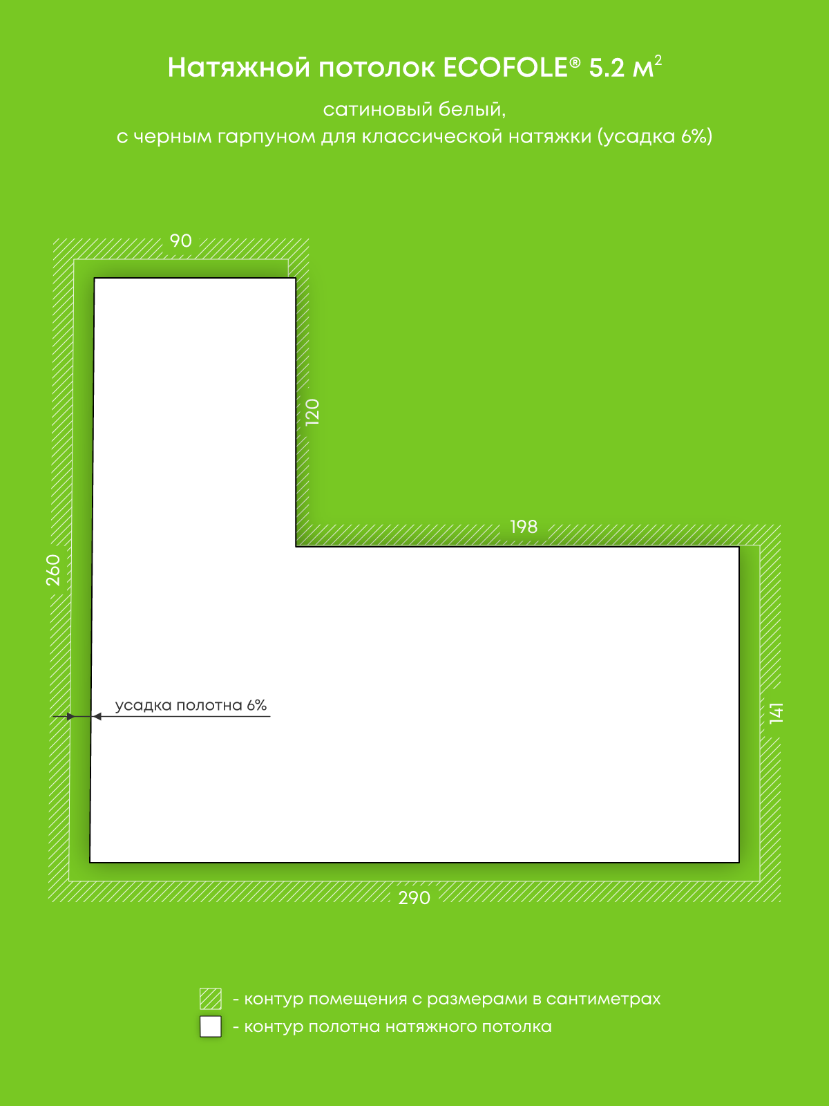 Натяжные потолки, изготовленные по индивидуальным размерам покупателя, для трех помещений площадью 5.2 м2, 19.7 м2, 13.7 м2