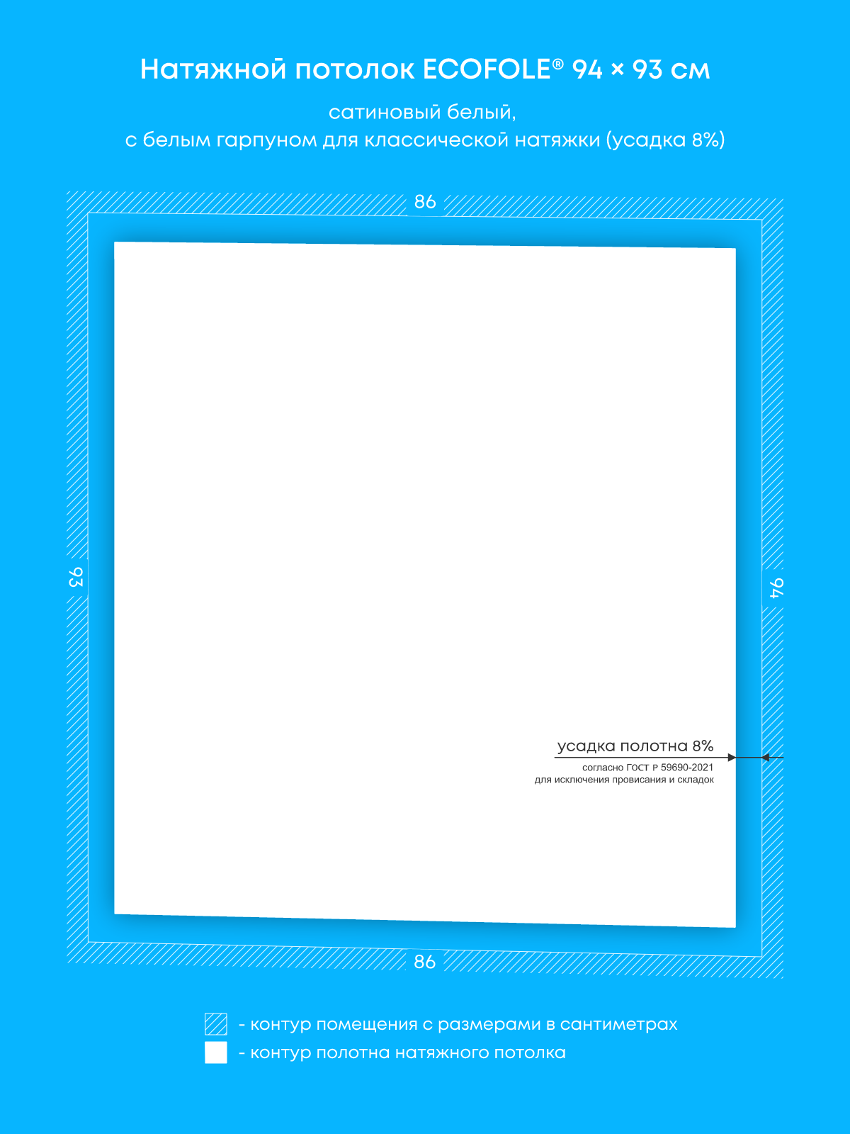 Натяжные потолки, изготовленные по индивидуальным размерам покупателя, для двух помещений площадью 5.5 м2, 0.8 м2