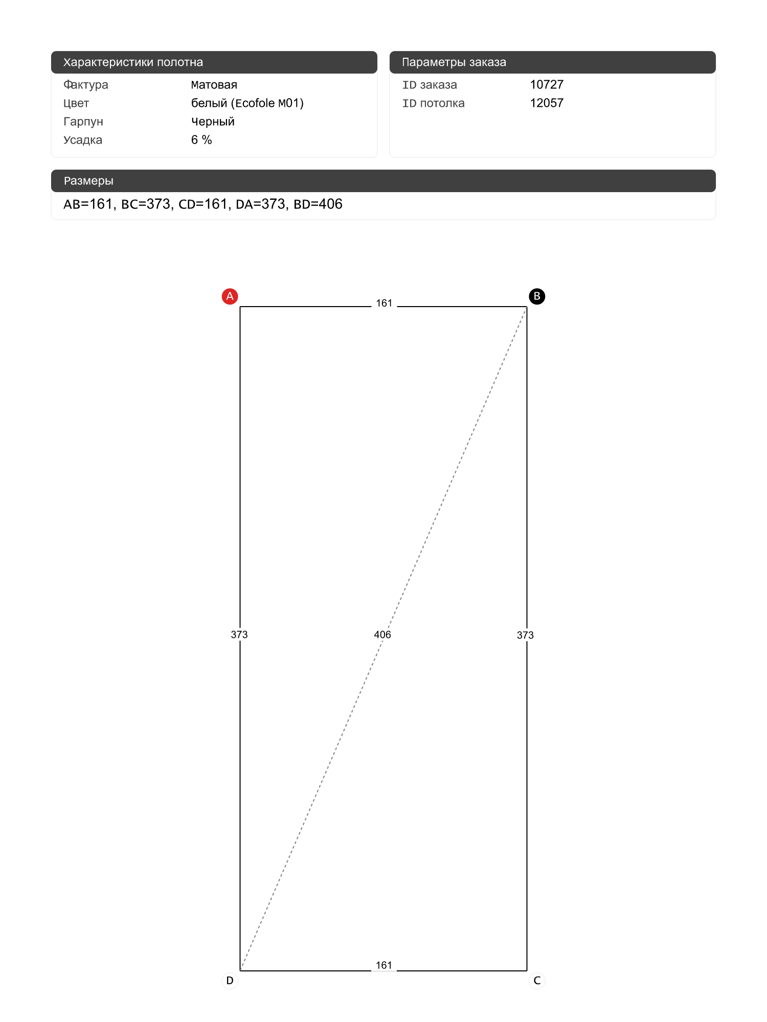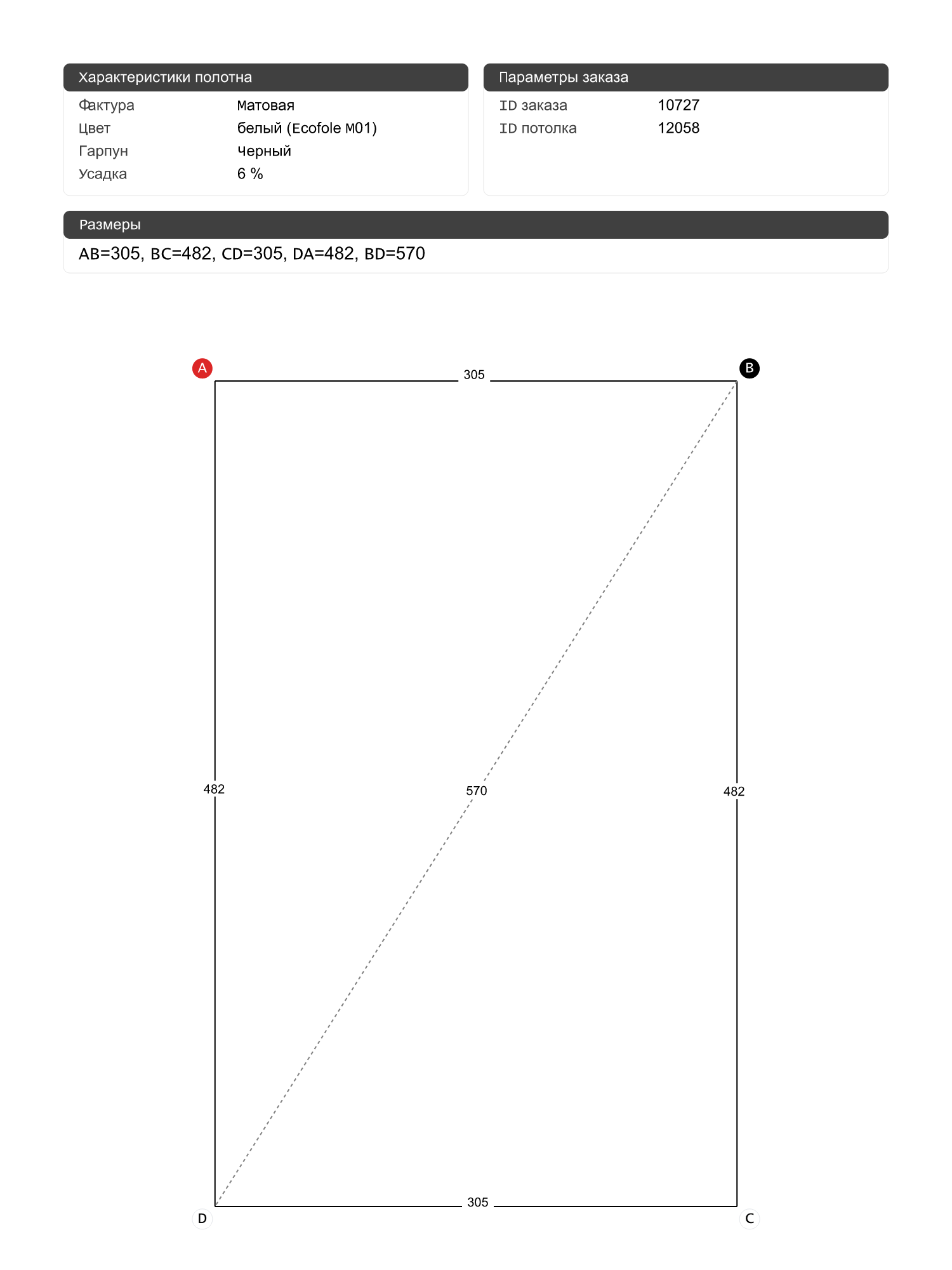 Натяжные потолки изготовленные по индивидуальным размерам покупателя, для пяти помещений площадью: 5.7 м2, 7.6 м2, 6 м2, 14.7 м2, 7.6 м2