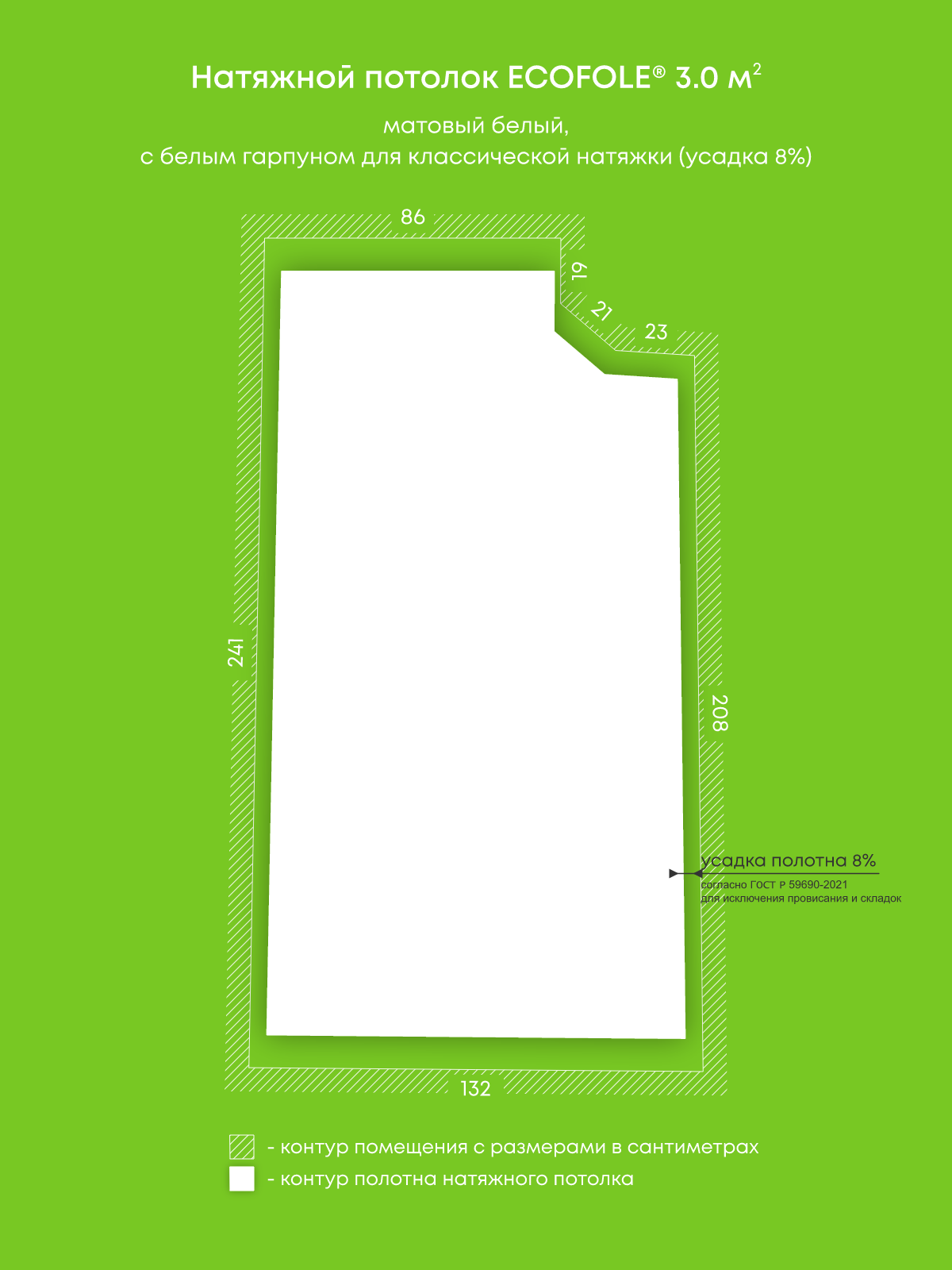 Натяжные потолки, изготовленные по индивидуальным размерам покупателя, для трех помещений площадью 6 м2, 5.2 м2, 3 м2
