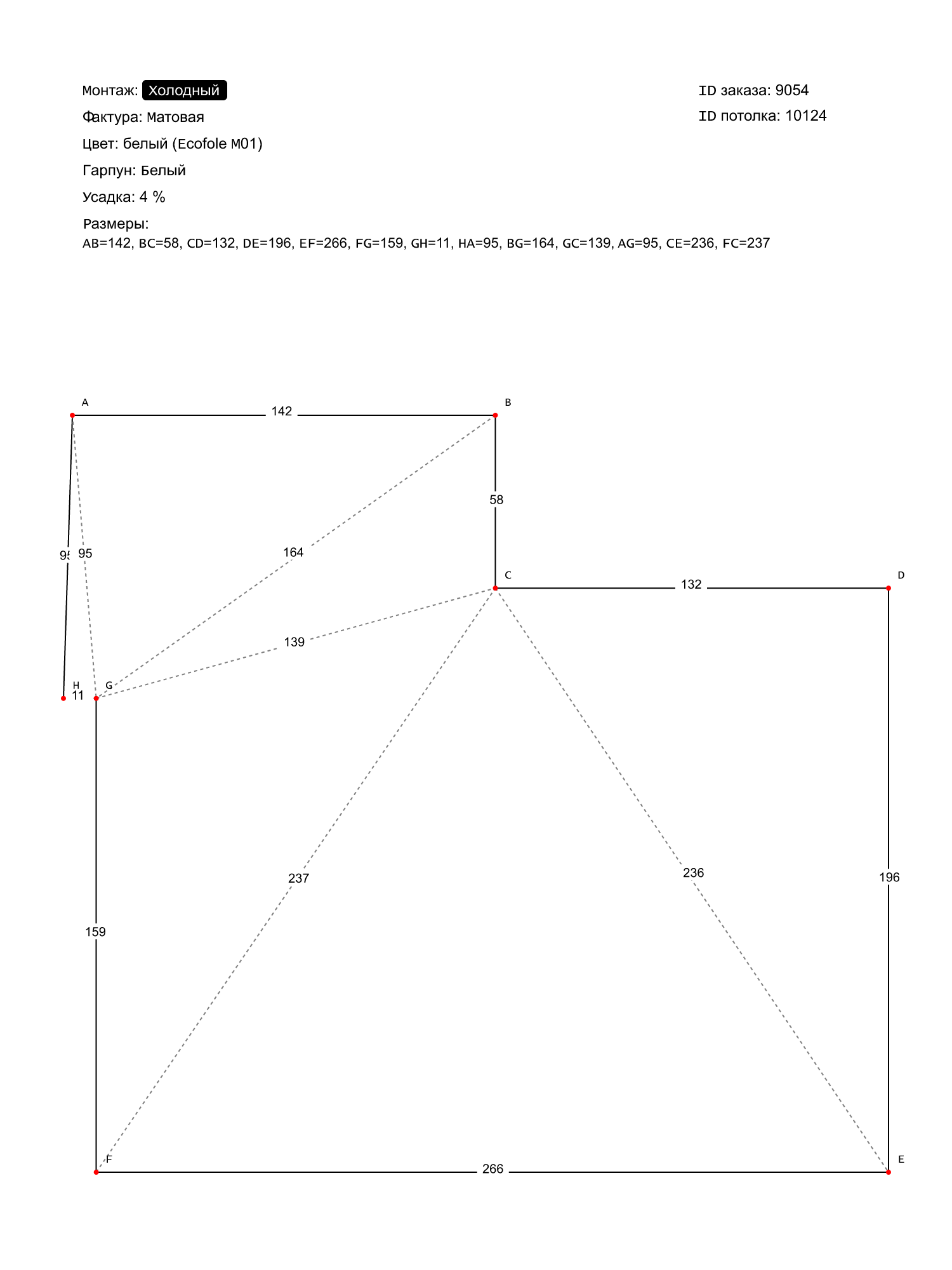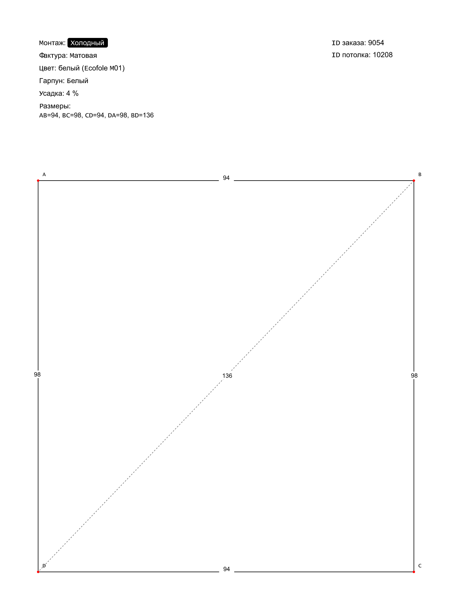 Натяжные потолки изготовленные по индивидуальным размерам покупателя, для двух помещений площадью: 6.1 м2, 0.9 м2
