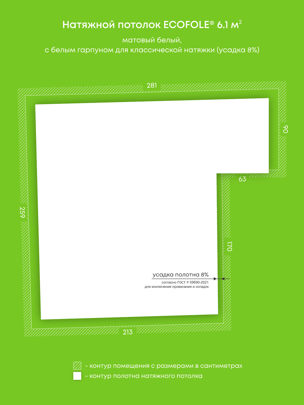 Натяжные потолки, изготовленные по индивидуальным размерам покупателя, для двух помещений площадью 6.1 м2, 4.6 м2