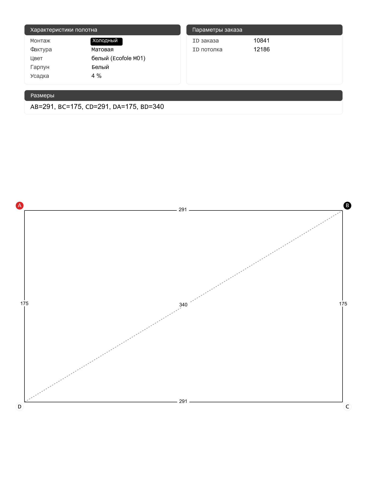 Натяжные потолки изготовленные по индивидуальным размерам покупателя, для двух помещений площадью: 6.1 м2, 5.1 м2
