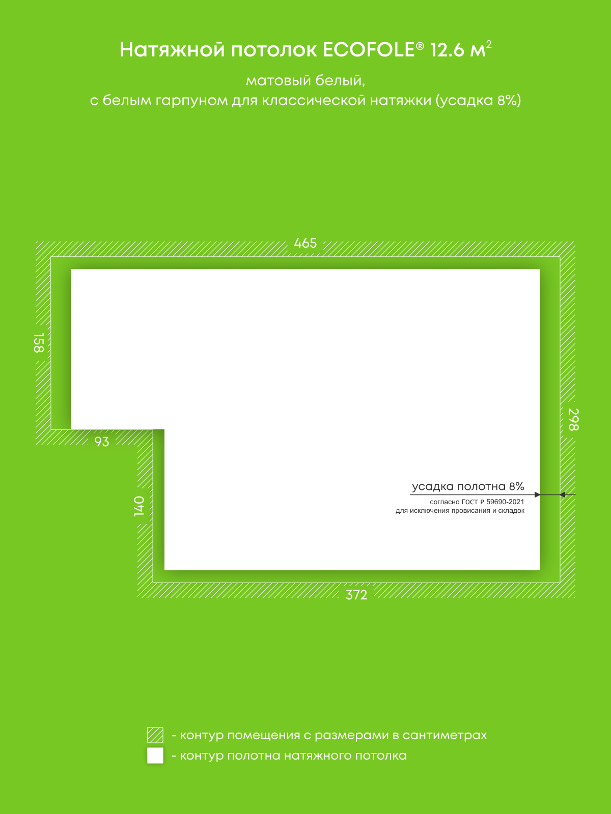 Натяжные потолки, изготовленные по индивидуальным размерам покупателя, для двух помещений площадью 6.8 м2, 12.6 м2