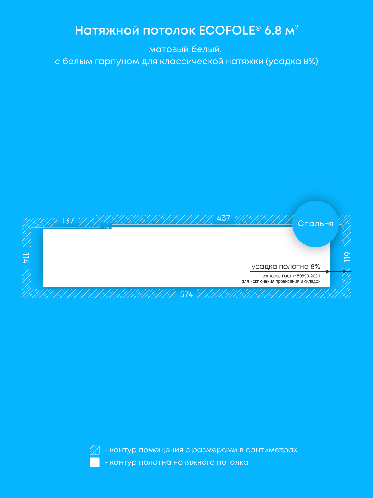 Натяжные потолки: 6.8 м2, 6 м2