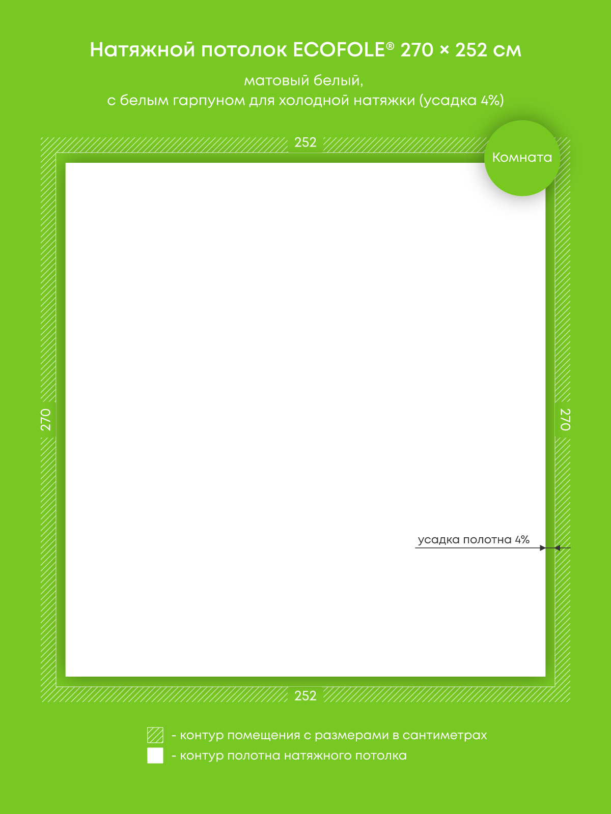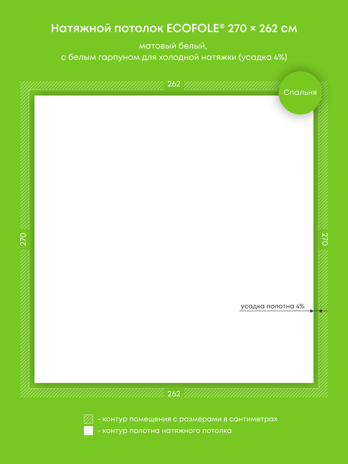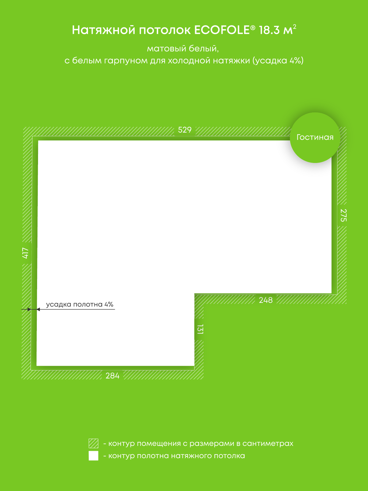 Натяжные потолки, изготовленные по индивидуальным размерам покупателя, для трех помещений площадью 6.8 м2, 7.1 м2, 18.3 м2