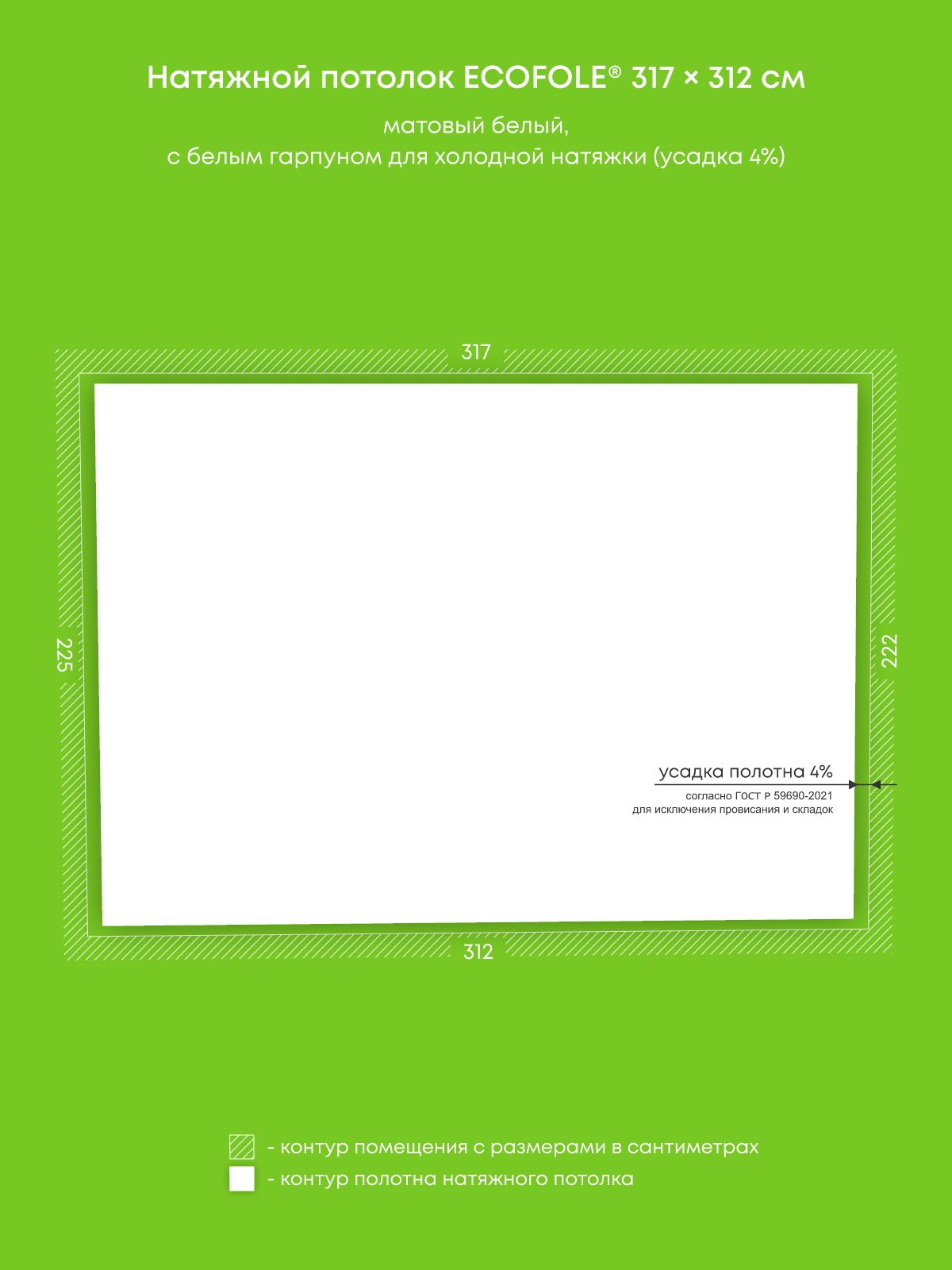 Натяжные потолки, изготовленные по индивидуальным размерам покупателя, для четырех помещений площадью 7 м2, 2 м2, 1 м2, 6.9 м2