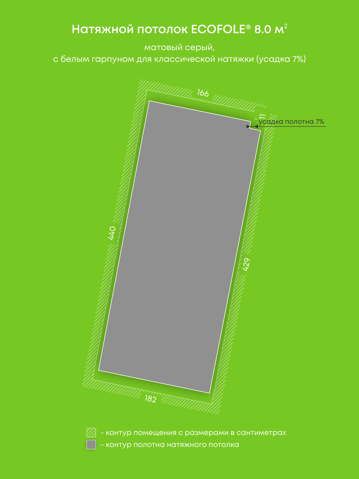 Натяжные потолки, изготовленные по индивидуальным размерам покупателя, для двух помещений площадью 7.2 м2, 8 м2