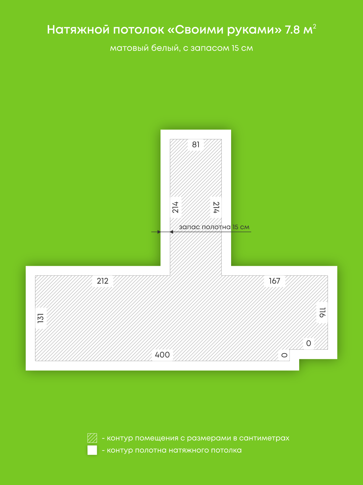 Натяжные потолки, изготовленные по индивидуальным размерам покупателя, для двух помещений площадью 7.8 м2, 0.8 м2