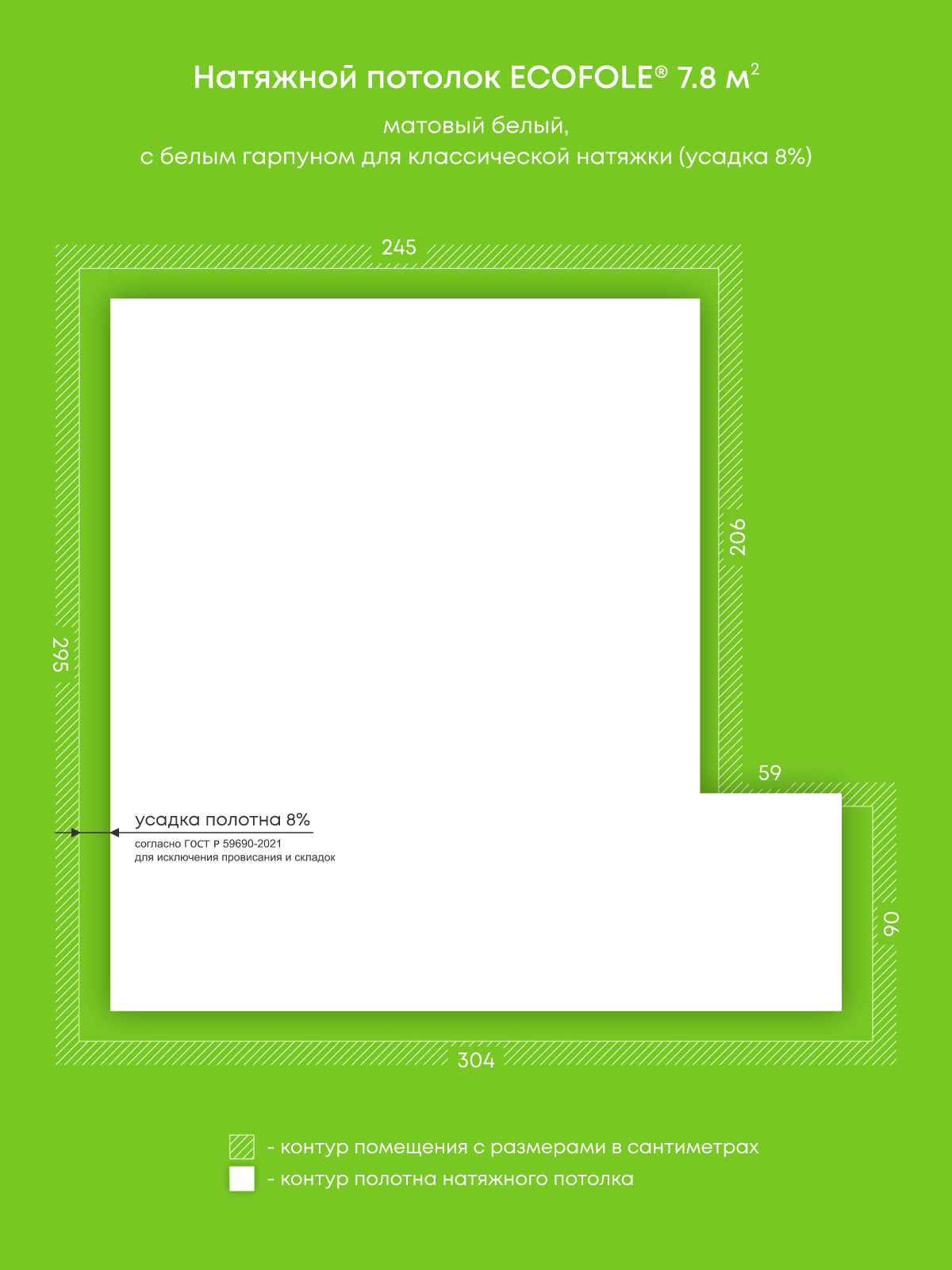 Натяжные потолки, изготовленные по индивидуальным размерам покупателя, для трех помещений площадью 7.8 м2, 17.5 м2, 4.3 м2
