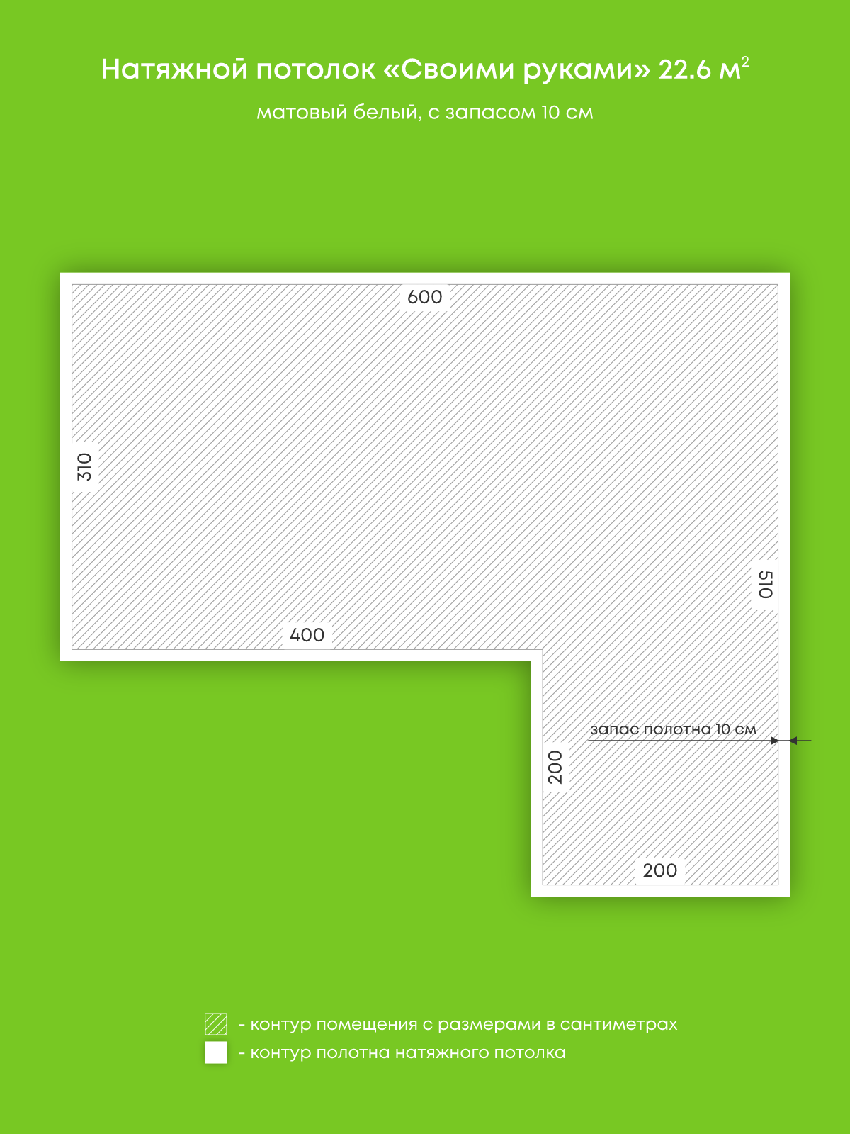 Натяжные потолки, изготовленные по индивидуальным размерам покупателя, для пяти помещений площадью 8 м2, 8 м2, 12 м2, 22.6 м2, 4 м2