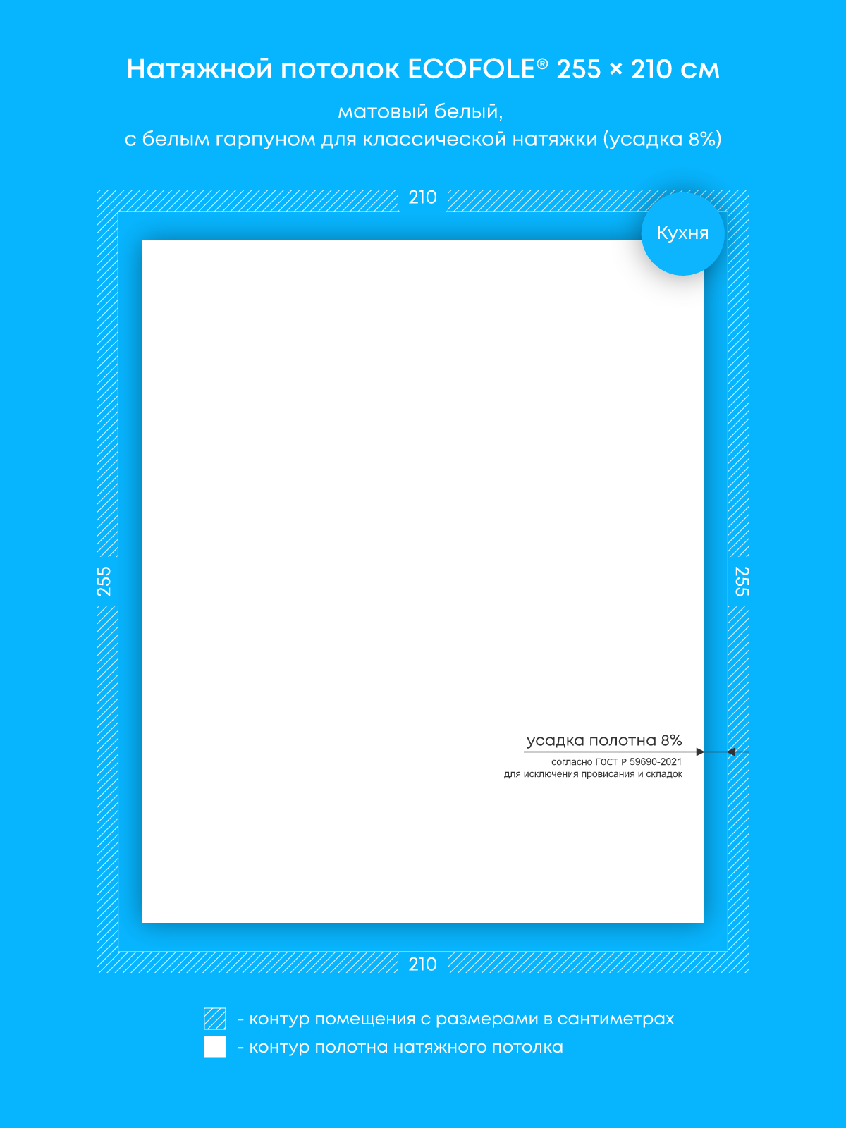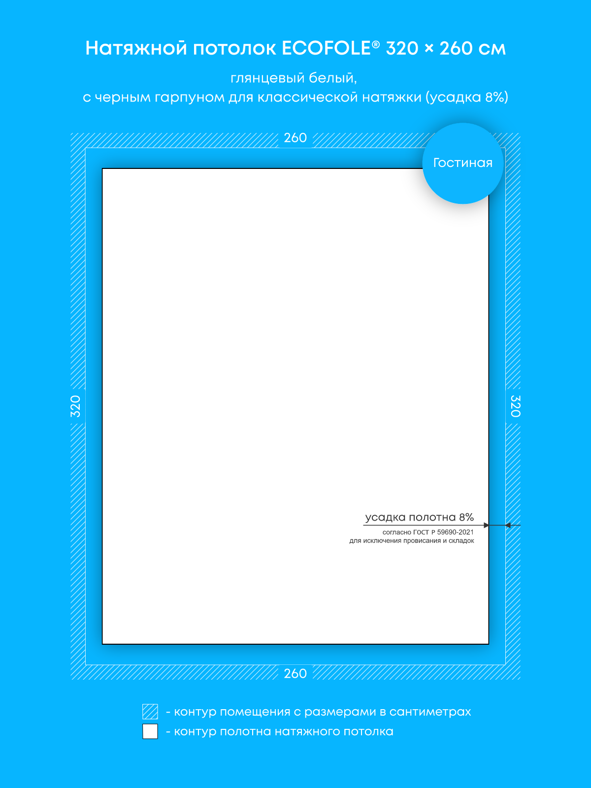 Натяжные потолки изготовленные по индивидуальным размерам покупателя, для двух помещений площадью: 8.3 м2, 5.4 м2
