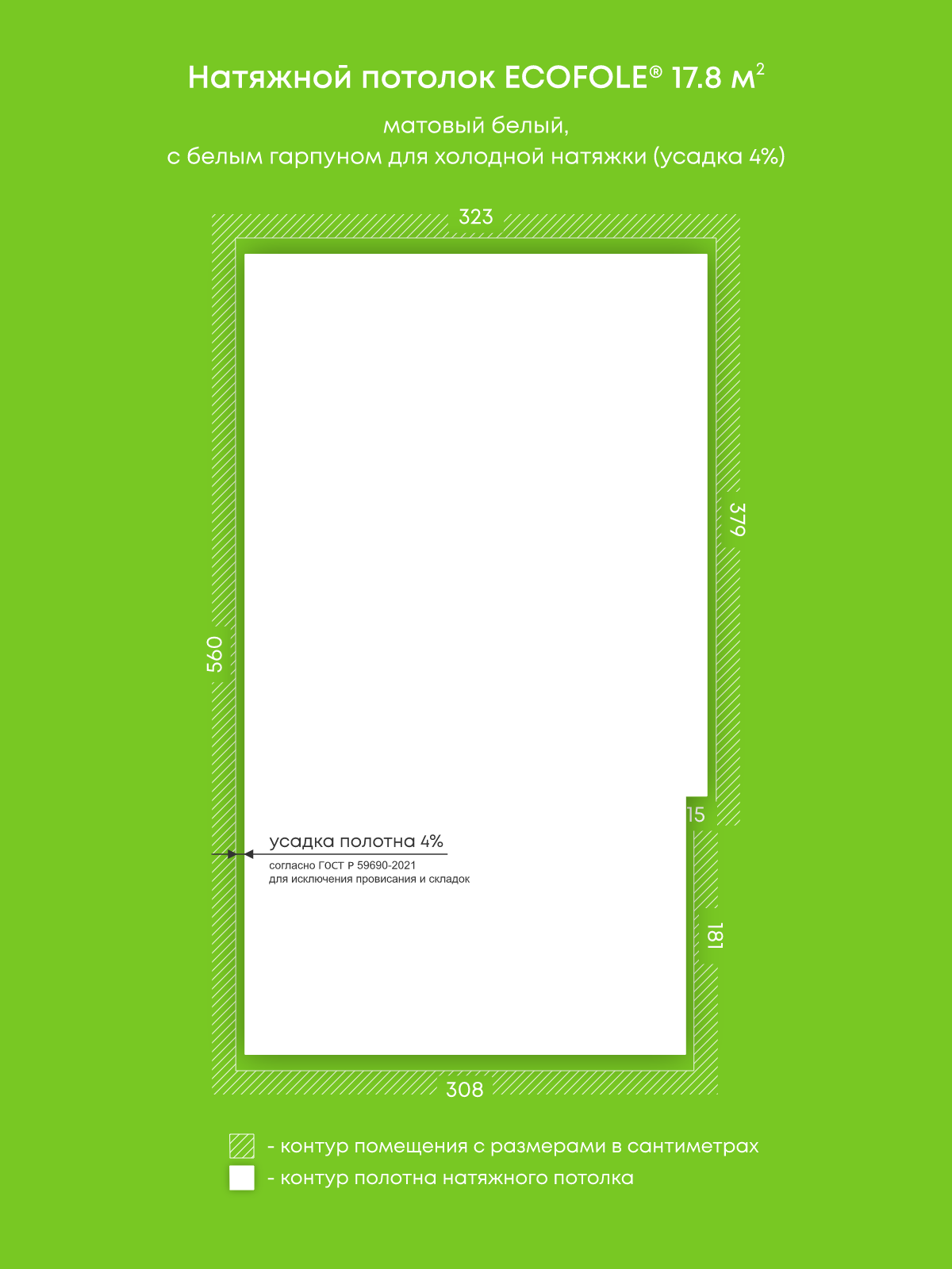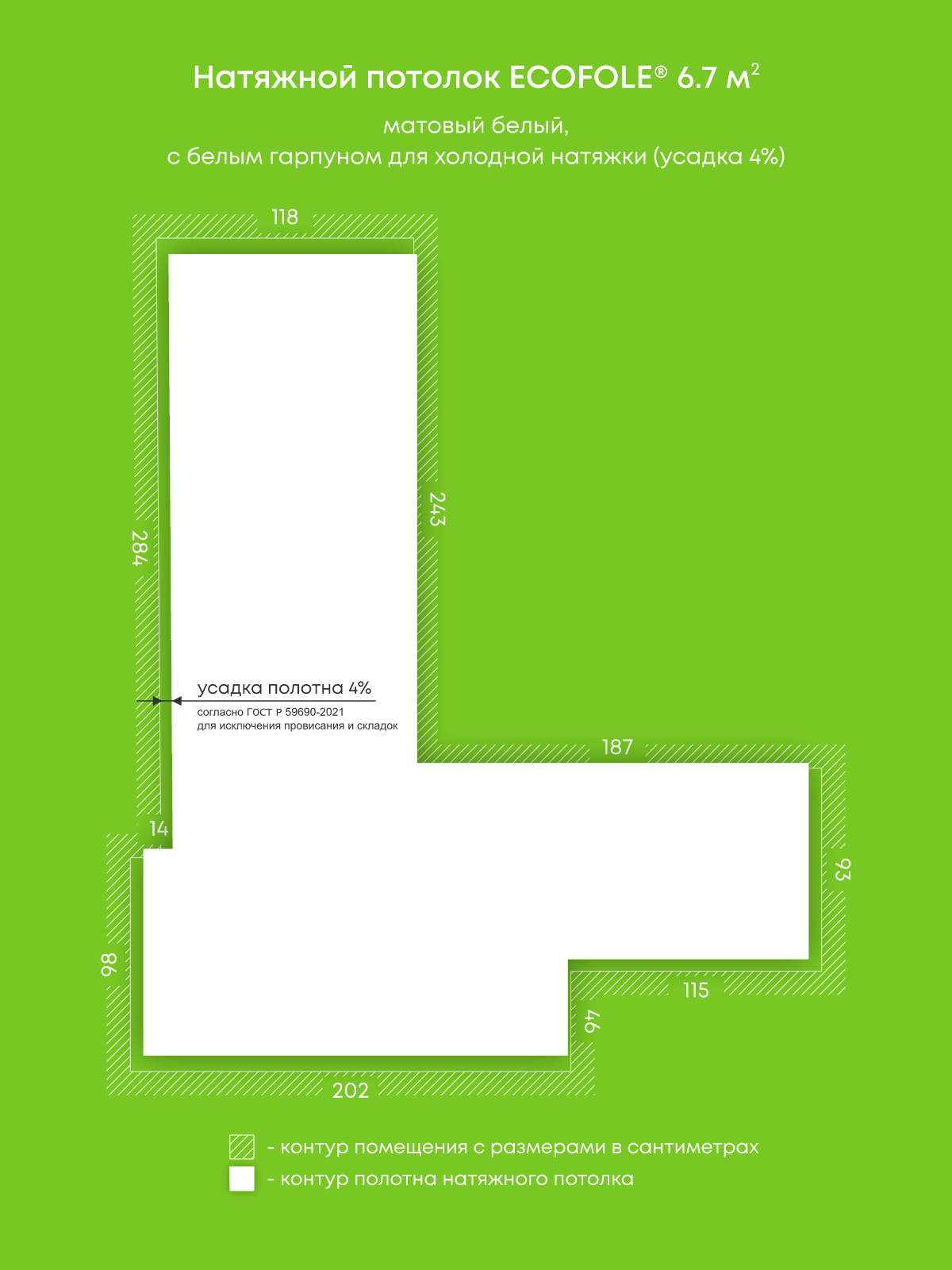 Натяжные потолки, изготовленные по индивидуальным размерам покупателя, для трех помещений площадью 8.7 м2, 17.8 м2, 6.7 м2