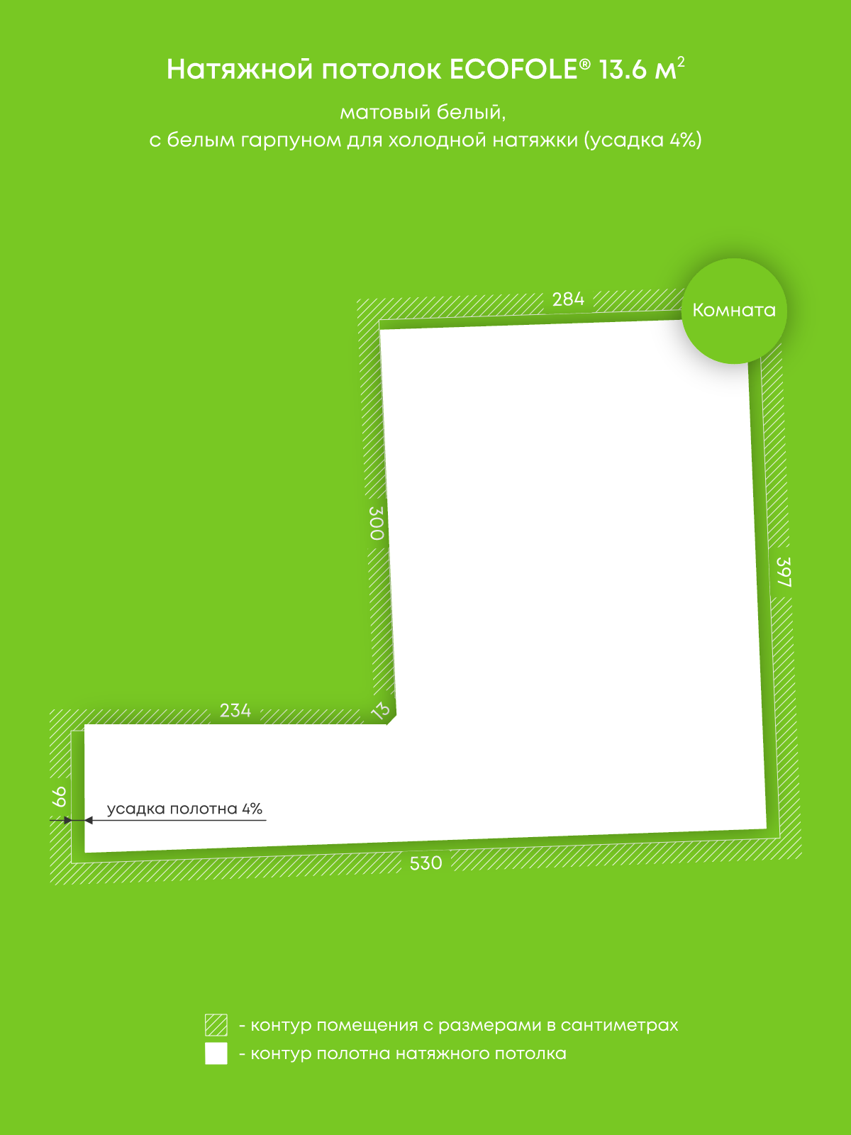 Натяжные потолки, изготовленные по индивидуальным размерам покупателя, для двух помещений площадью 9 м2, 13.6 м2