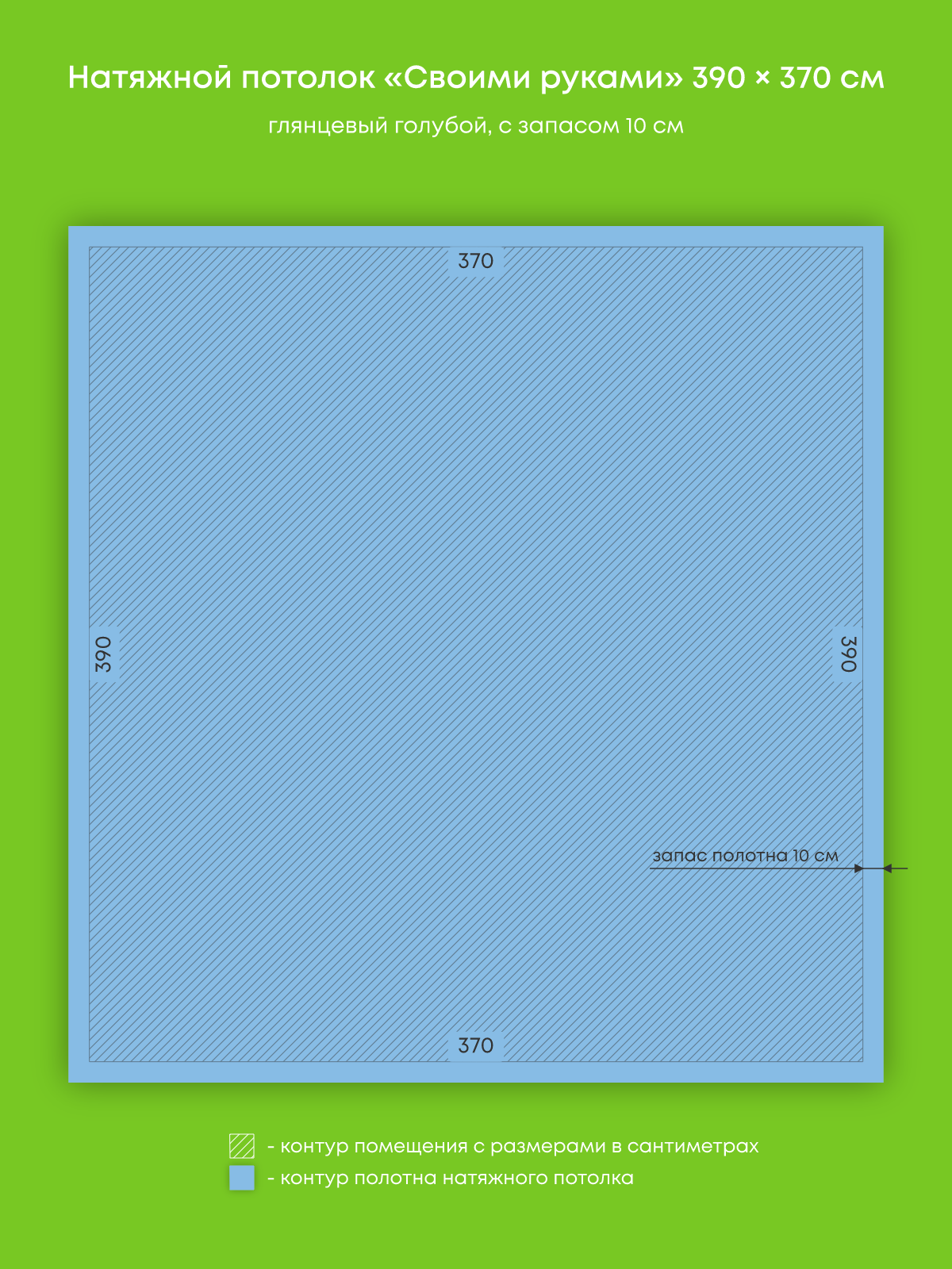 Натяжные потолки, изготовленные по индивидуальным размерам покупателя, для четырех помещений площадью 9 м2, 7.2 м2, 17.3 м2, 14.4 м2