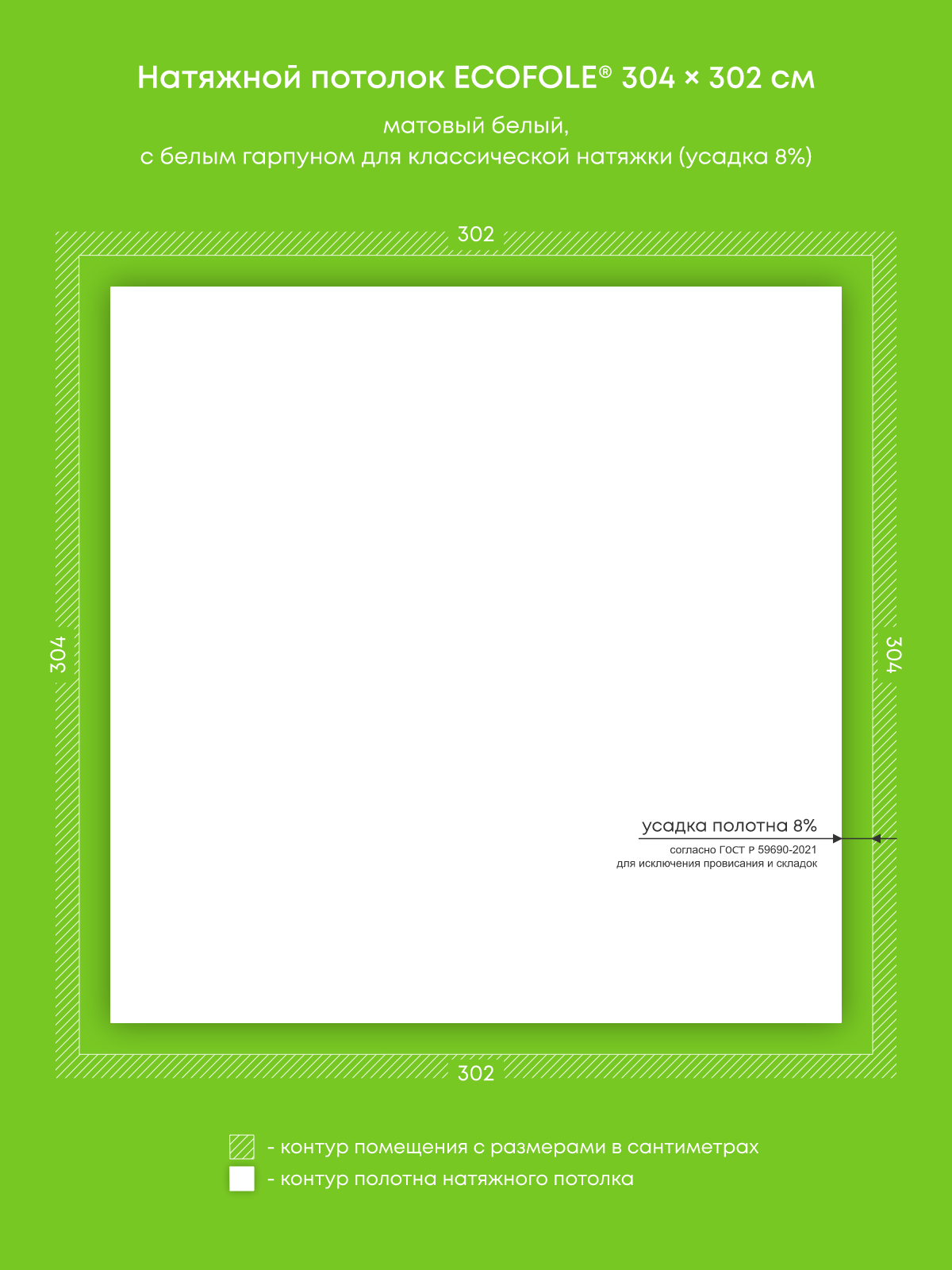 Натяжные потолки, изготовленные по индивидуальным размерам покупателя, для пяти помещений площадью 9.2 м2, 9.4 м2, 11.1 м2, 3.9 м2, 2.5 м2