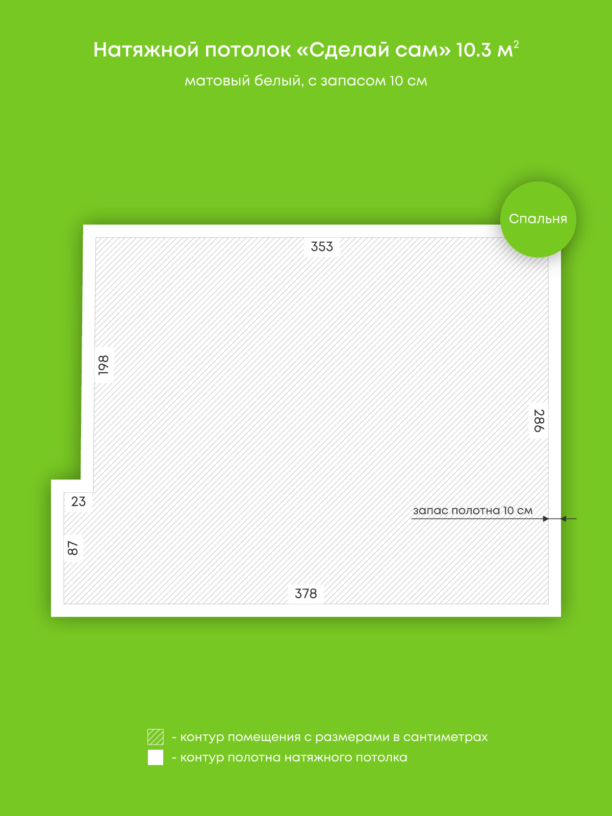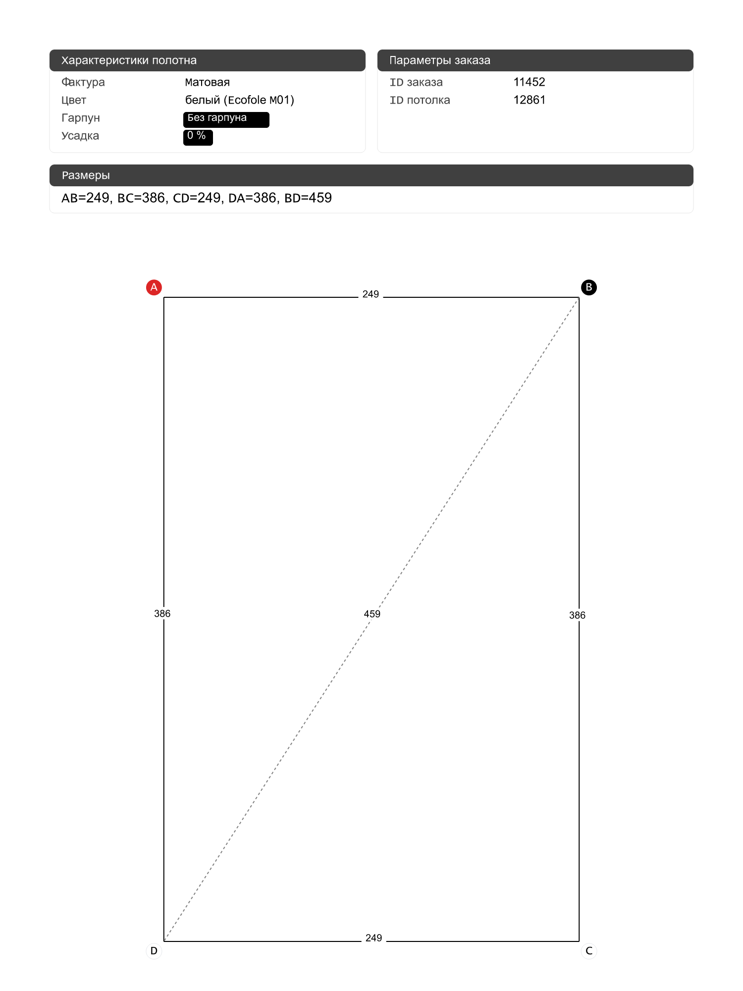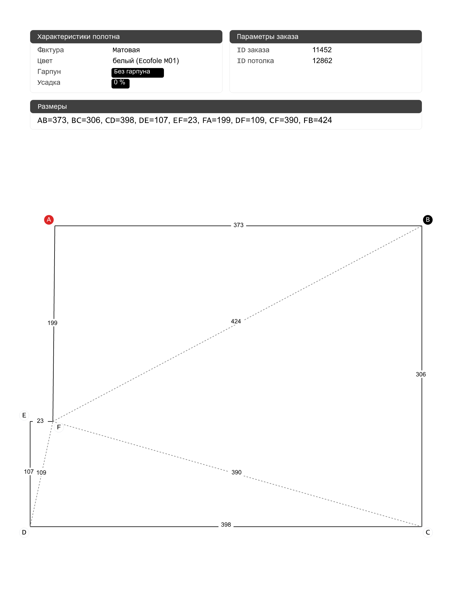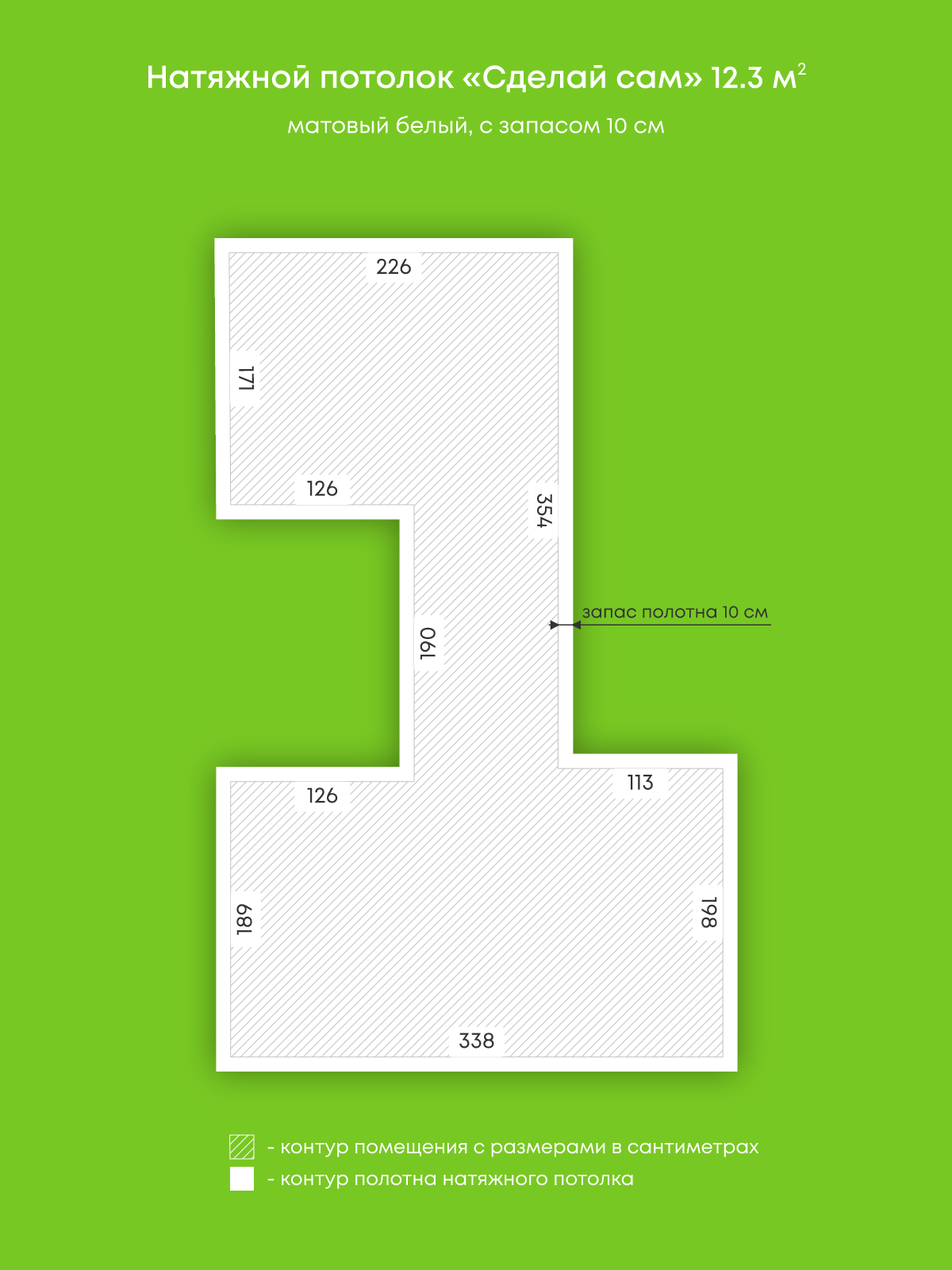 Натяжные потолки изготовленные по индивидуальным размерам покупателя, для помещений площадью: 9.6 м2, 8.4 м2, 10.3 м2, 12.3 м2, 4.1 м2, 1.9 м2