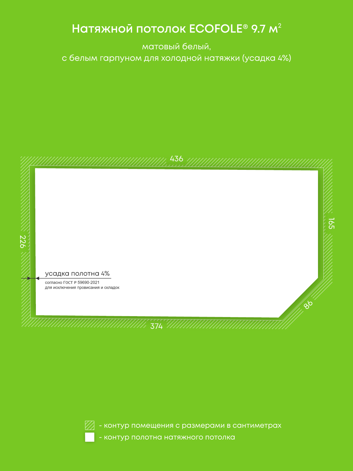 Натяжные потолки, изготовленные по индивидуальным размерам покупателя, для двух помещений площадью 9.7 м2, 8.8 м2