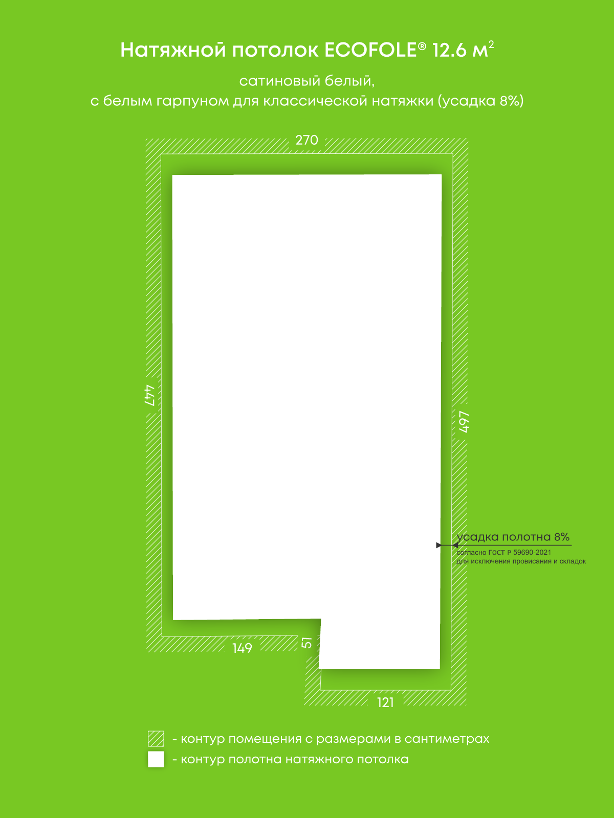 Натяжные потолки, изготовленные по индивидуальным размерам покупателя, для двух помещений площадью 9.8 м2, 12.6 м2