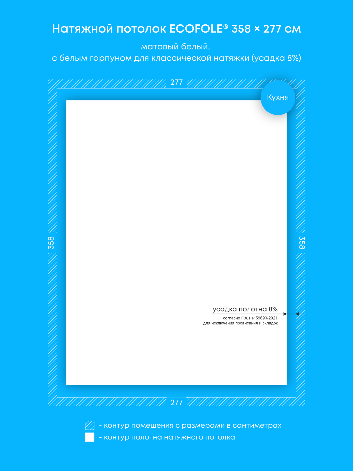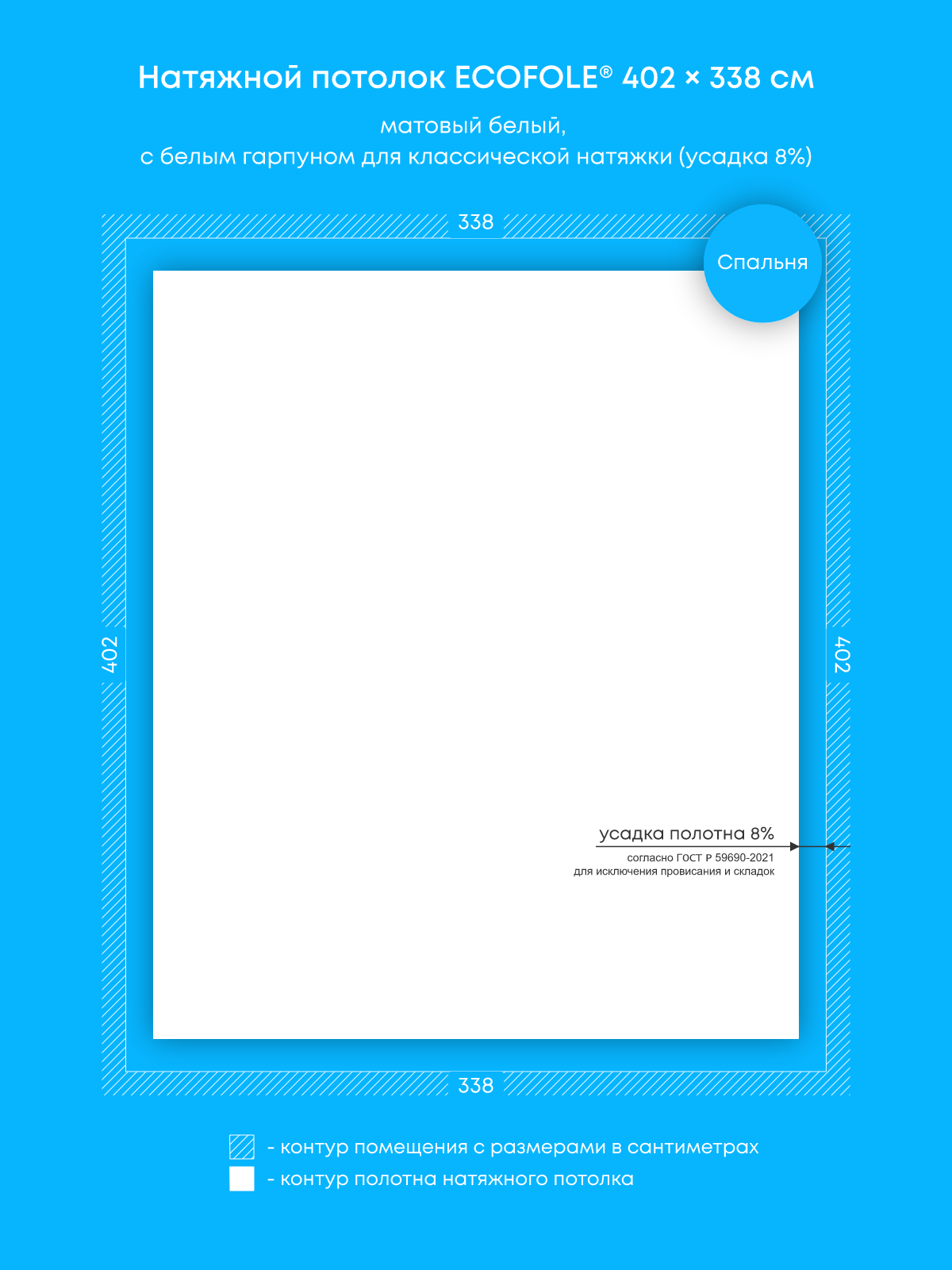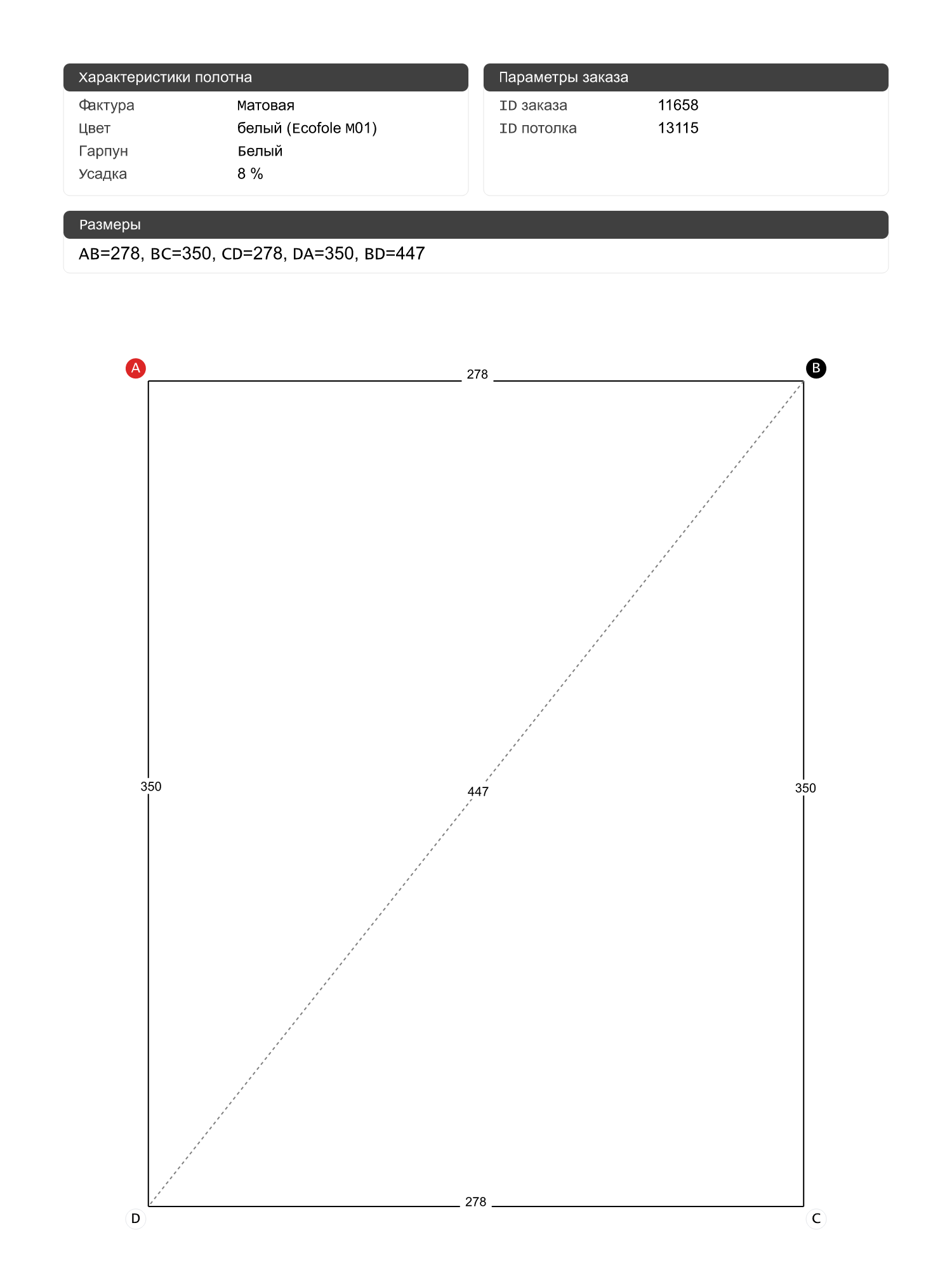 Натяжные потолки изготовленные по индивидуальным размерам покупателя, для четырех помещений площадью: 9.9 м2, 16.6 м2, 17.2 м2, 13.6 м2