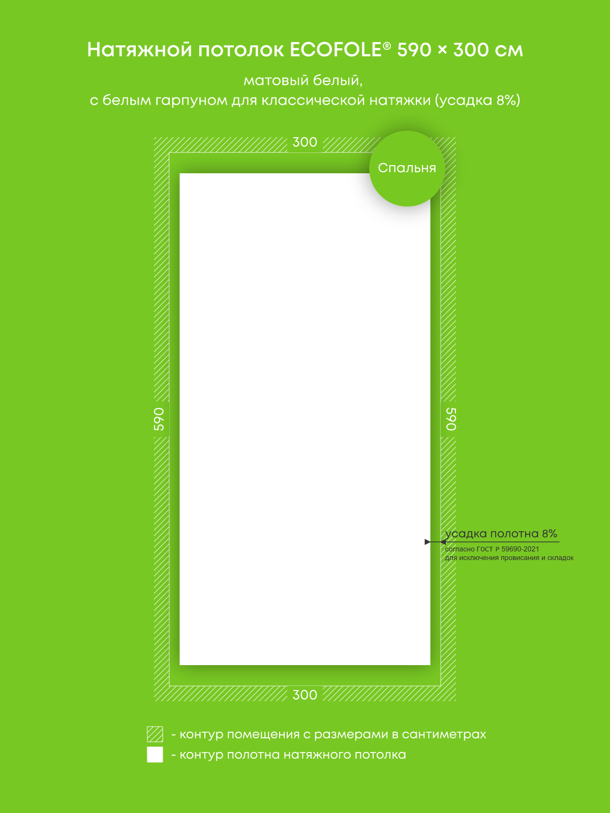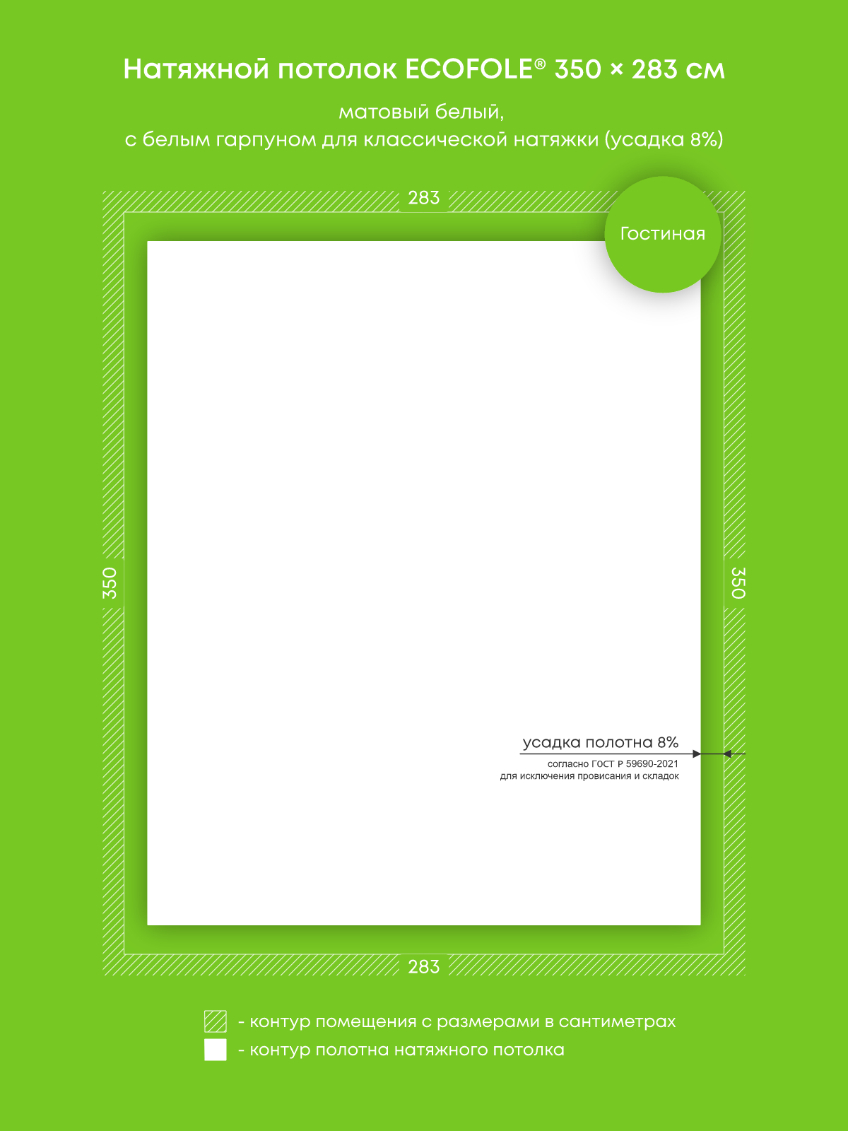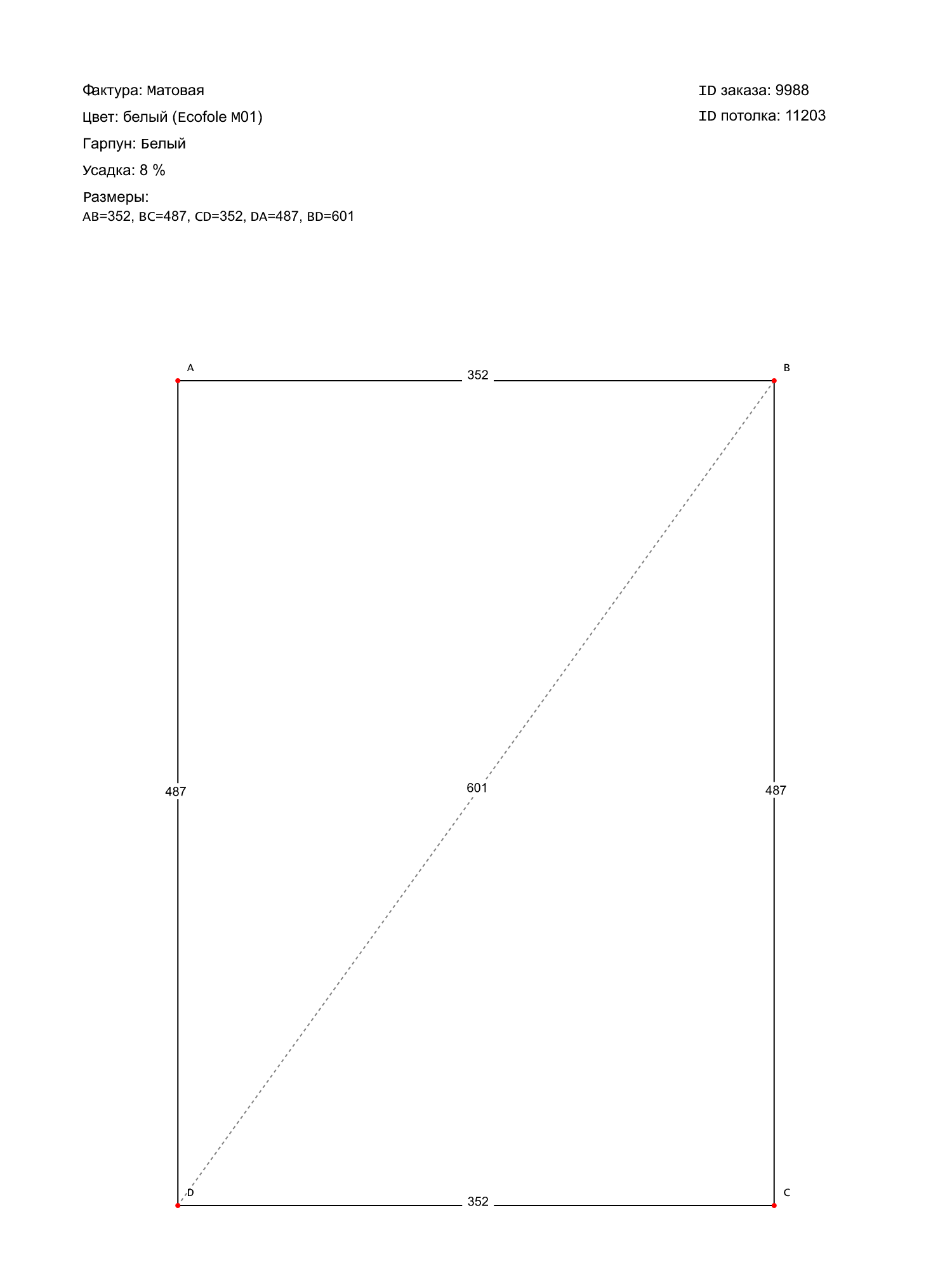 Натяжные потолки изготовленные по индивидуальным размерам покупателя, для четырех помещений площадью: 9.9 м2, 17.7 м2, 17.1 м2, 9.9 м2