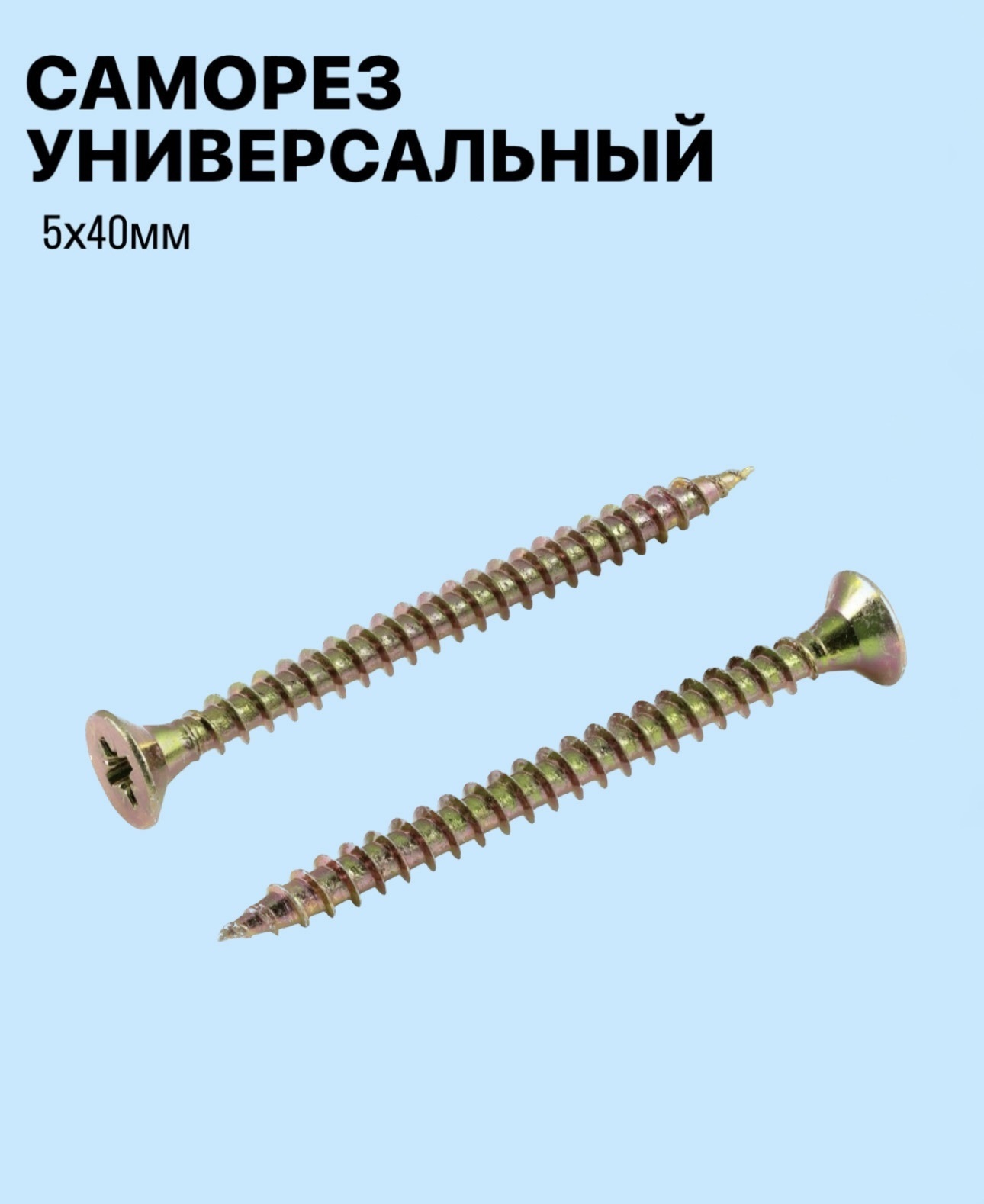 Саморез универсальный создан для крепления различных конструкций к дереву, тонколистовому металлу и другим материалам. За счет универсальных качеств крепеж может применяться в самых разных областях, так как способен обеспечить надежное соединение деталей конструкций из разных материалов — металлических, из дерева и продукции деревообрабатывающей промышленности типа ДСП, ДВП и т.п., листов гипсокартона, полимеров. Может использоваться не только в сфере строительства, но и в производстве мебели, автомобилей, судостроении и многих других производствах. Наконечник острый, поэтому крепеж монтируется электроинструментом (шуруповертом) без заранее подготовленных монтажных отверстий. Оснащение головкой плоской формы с крестообразным шлицем позволяет скрывать место установки крепежа под отделочным слоем, придавая конструкции эстетичный внешний вид. Крепеж необходимо подбирать по длине в зависимости от параметров конкретной конструкции и разновидностей используемых материалов.