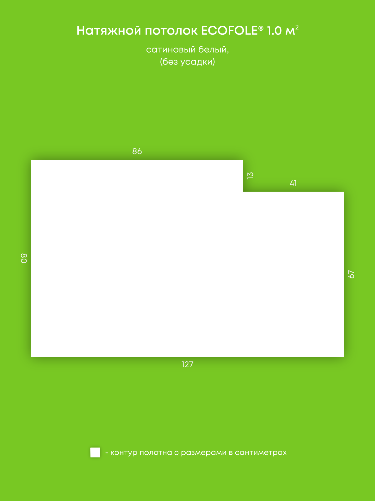 Натяжной потолок белый сатиновый, изготовленный по индивидуальным размерам покупателя, для помещения площадью 1 м2